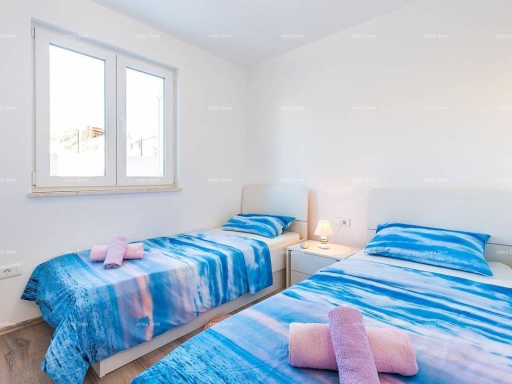 Na izvrsnoj lokaciji u Medulinu, svega 100 metara od mora, prodaje se potpuno uređena i moderno opremljena kuća s dva odvojena apartmana idealna za turistički najam ili obiteljski odmor.