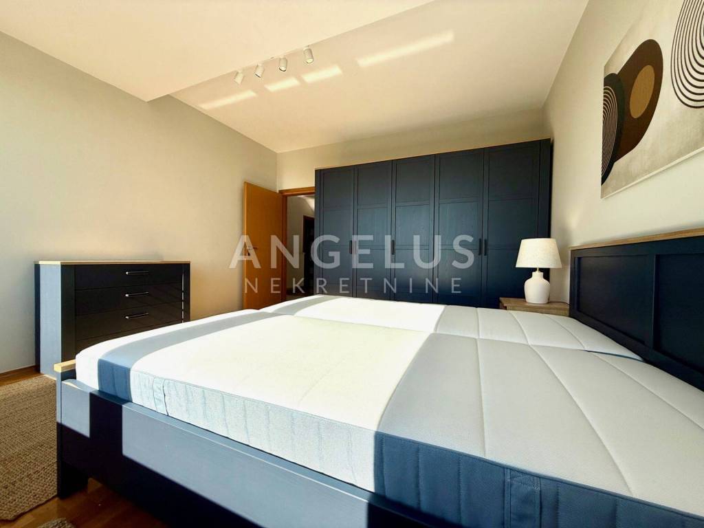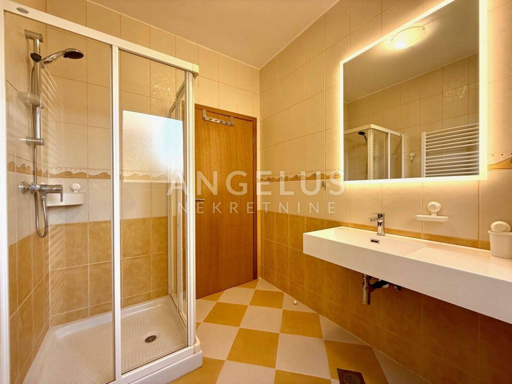 Dvojna kuća površine 240 m2, prostire se na dvije etaže, prizemlja i kata. U prizemlju se nalazi ulazni prostor s velikom garderobom, garaža, 3 velike spavaće sobe, dvije kupaonice od kojih jedna ima tuš, a druga ima kadu.
