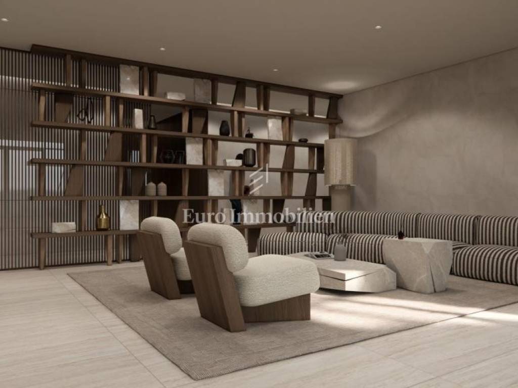 Jedna od glavnih prednosti ovog stana je njegov miran položaj s pogledom na park, koji nudi osjećaj privatnosti. Ipak, stan je smješten u blizini svih potrebnih sadržaja, a more je udaljeno samo 150 metara, što ovu nekretninu čini izvrsnim izborom za one koji traže savršenu ravnotežu između urbanog života i prirodnog okruženja.