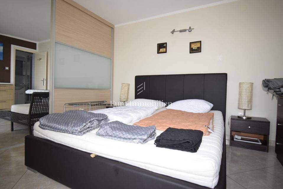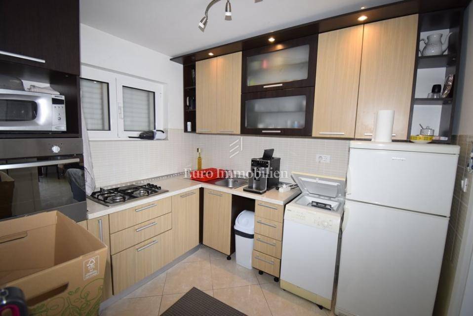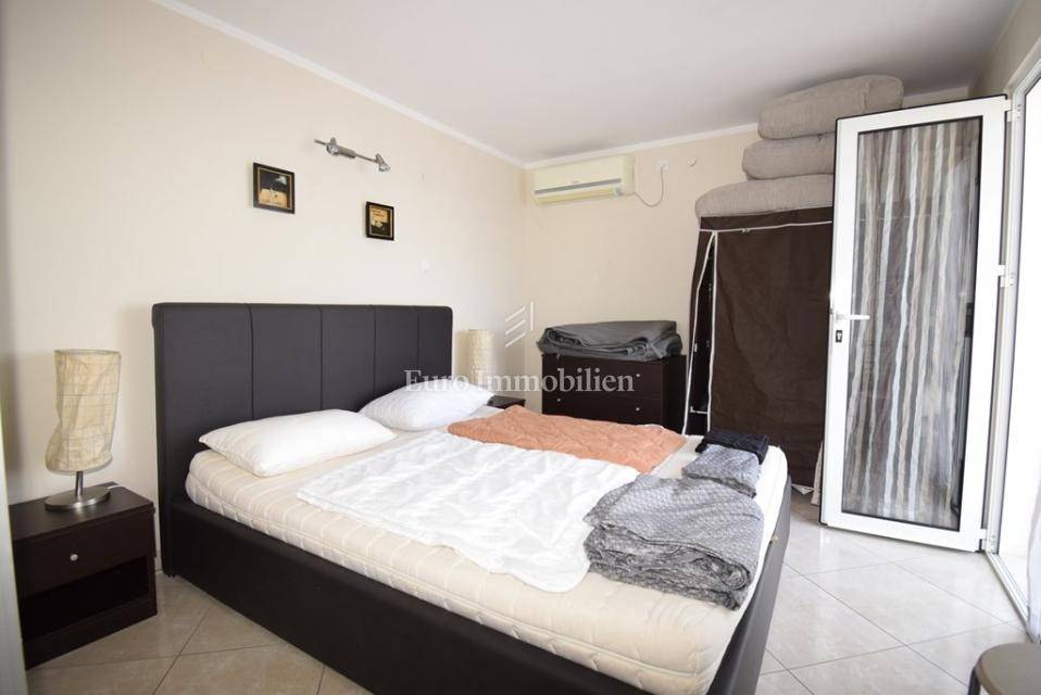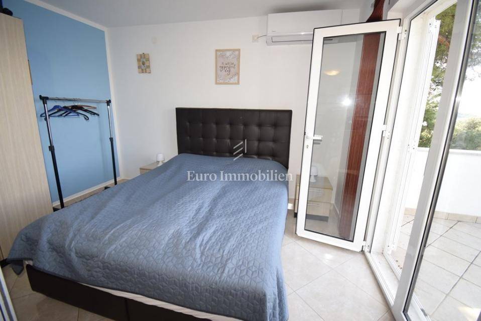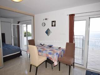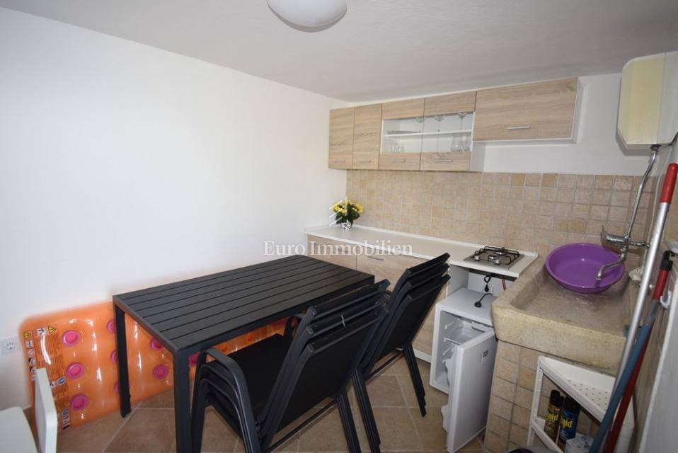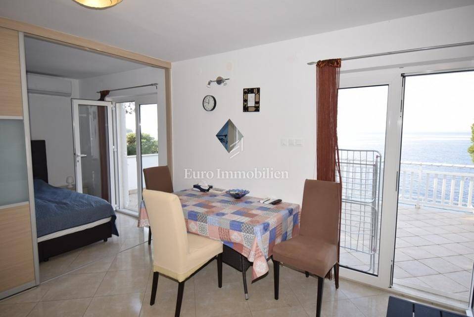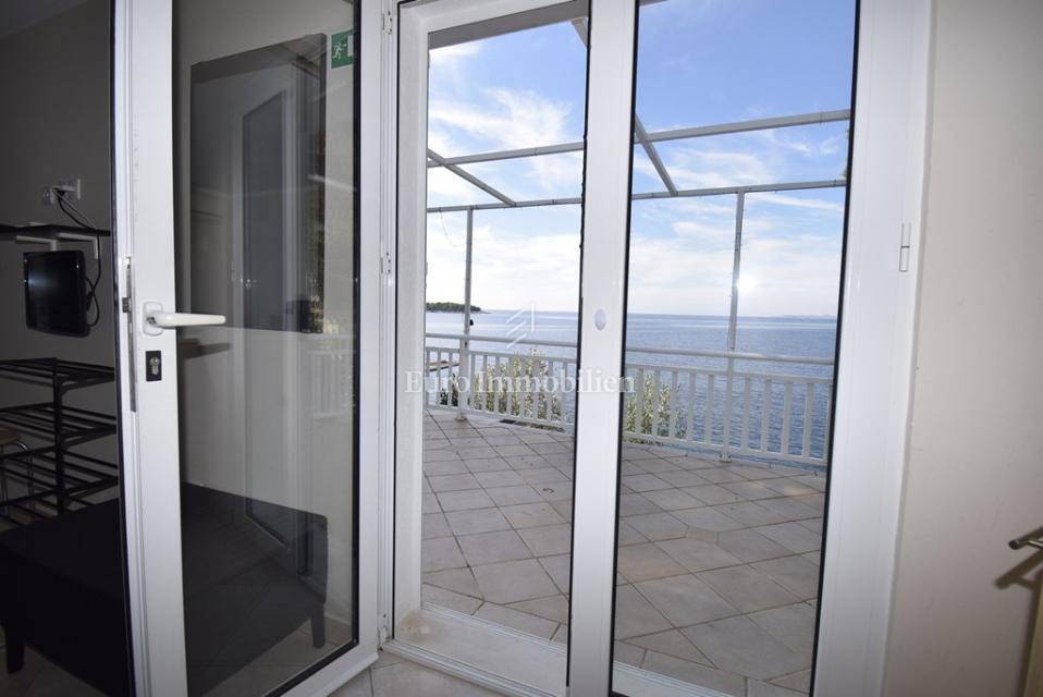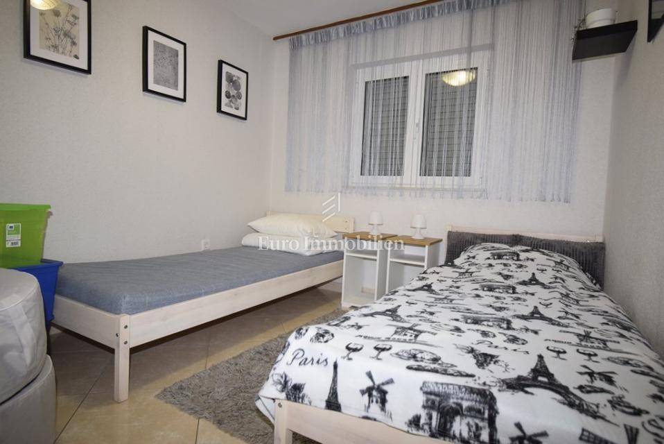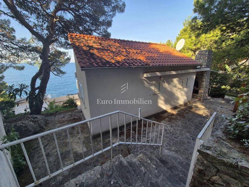 Ispred kuće se nalazi šetnica i more. Prva plaža udaljena je minutu hoda. Do centra mjesta šetnjom je samo 10 minuta. Kuća se sastoji od tri stana, jedan dvosoban i dva jednosobna. Stanovi su kompletno uređeni i namješteni, kuća je odmah useljiva.
