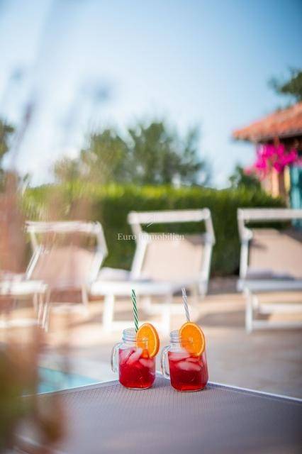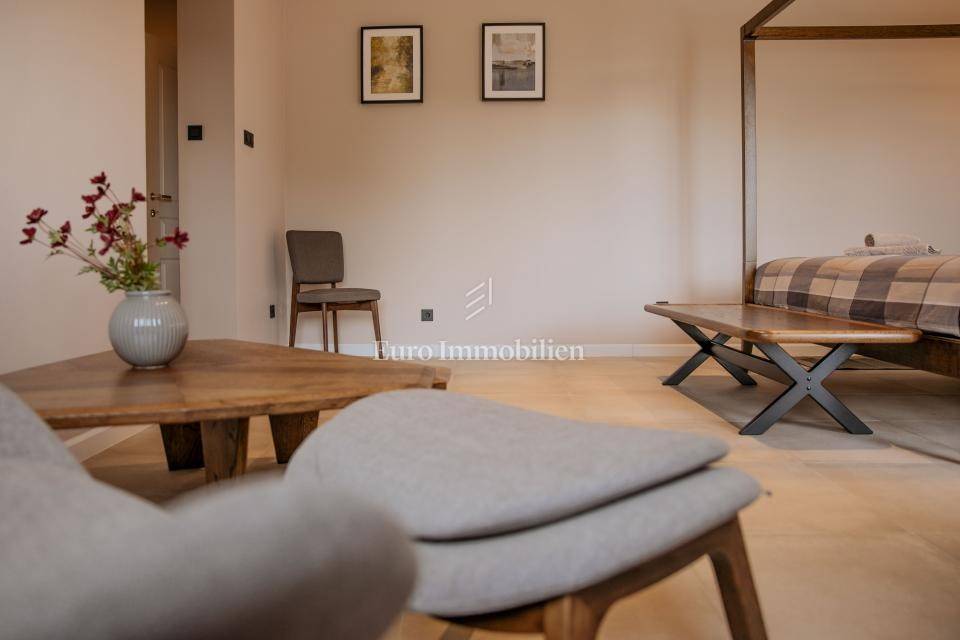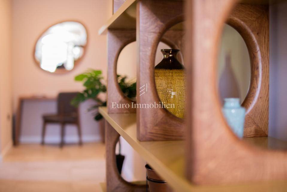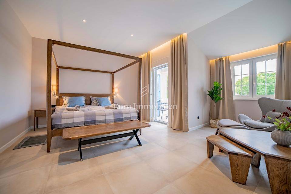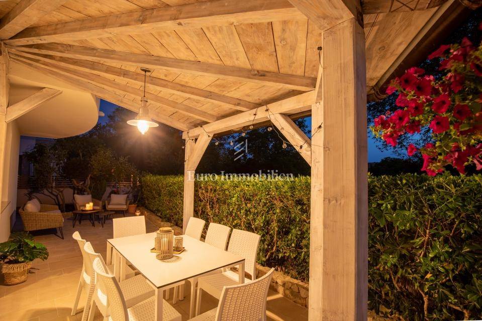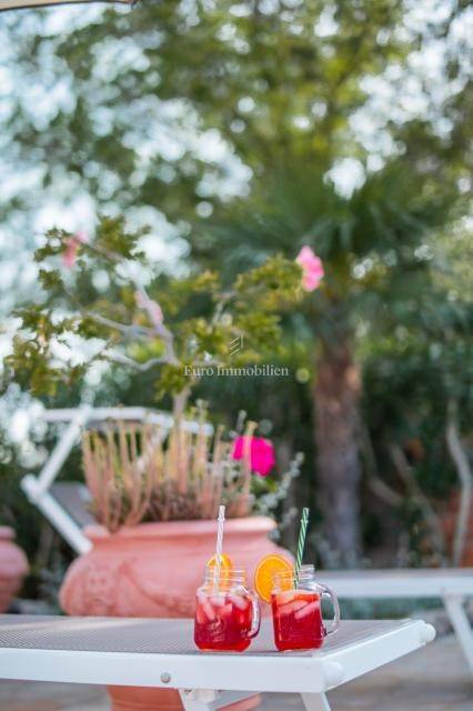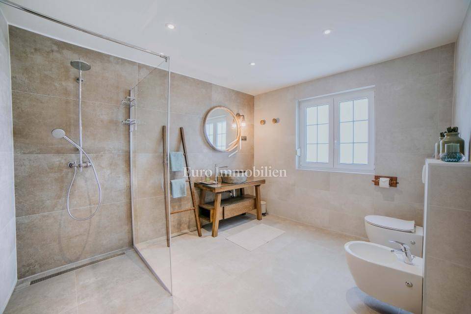 Prodaje se lijepa samostojeća kuća s pogledom na more i bazenom u uvali Soline na otoku Krku. Kuća površine 200 m2 proteže se na prizemlje i kat. U prizemlju se nalaze tri spavaće sobe, kupaonica, hodnik, kuhinja s blagovaonicom, dnevni boravak s izlazom na natkrivenu terasu. Vanjskim stepenicama dolazi se na prvi kat koji ima dva ulaza, na svakom su po jedna soba s kupaonicom i balkonom. Ima i konobu 4 x 4,50. Ugrađeni su električni norveški radijatori i klime uređaji. Na lijepo uređenoj okućnici nalazi se sjenica, roštilj, bazen i sunčalište.