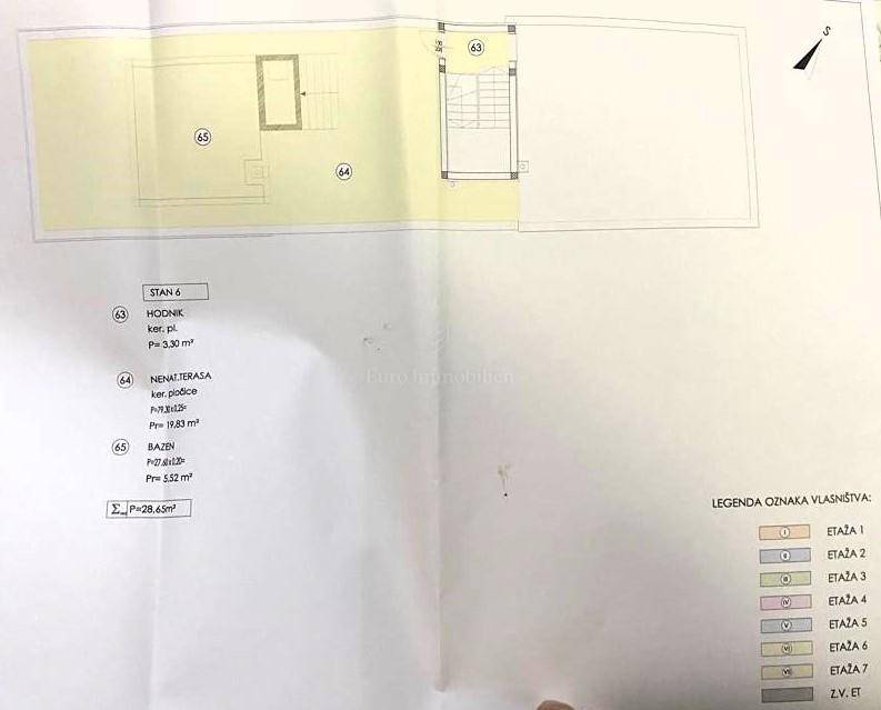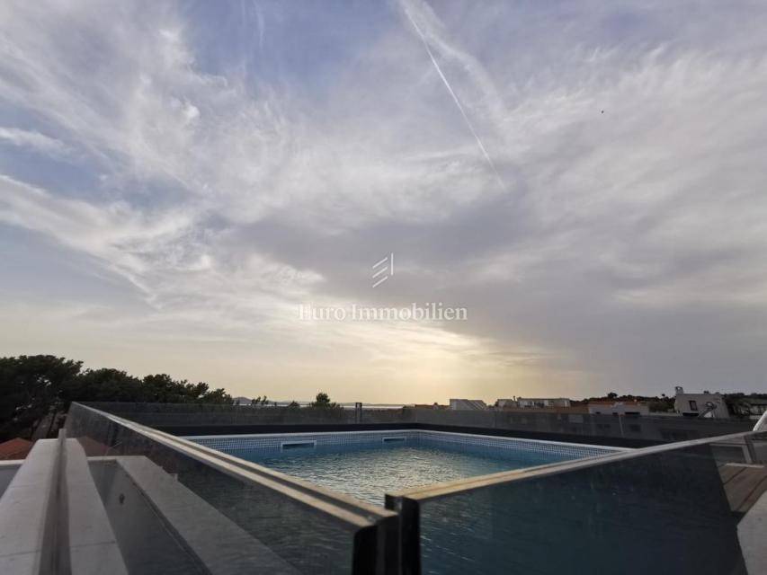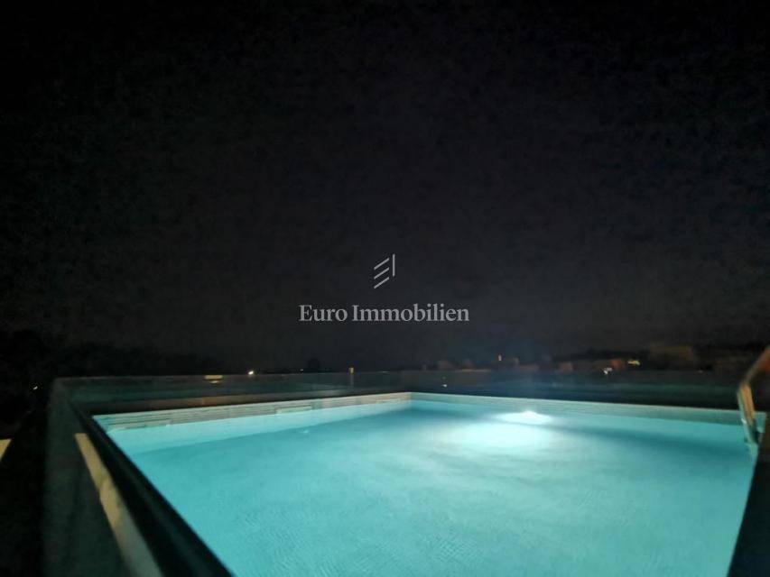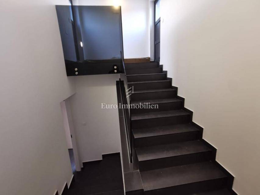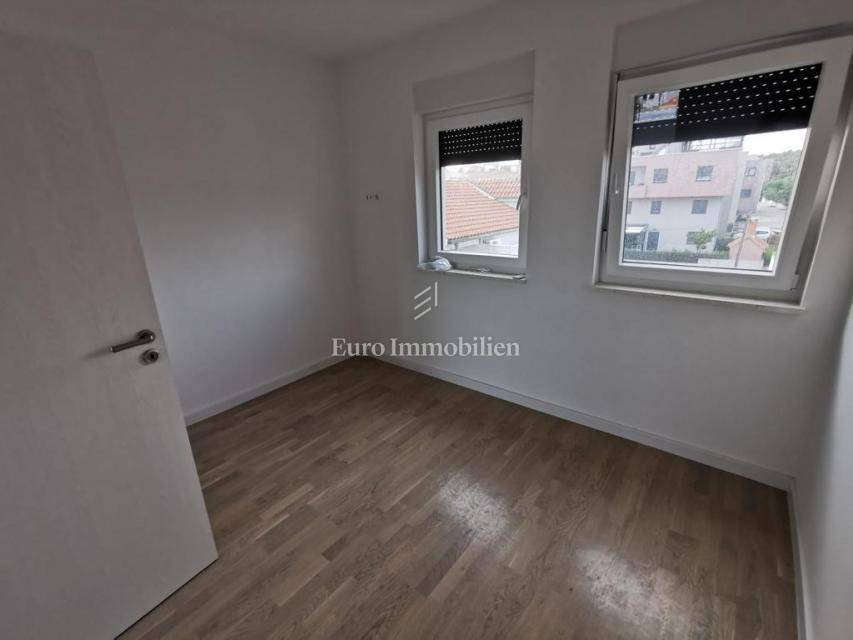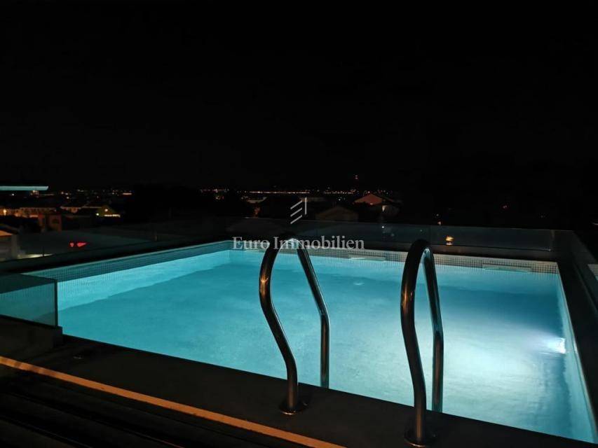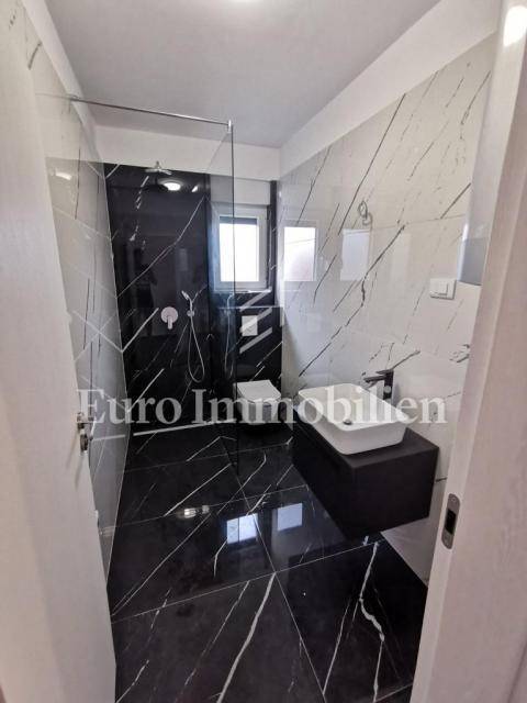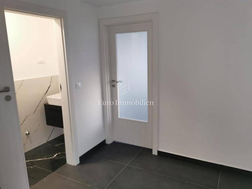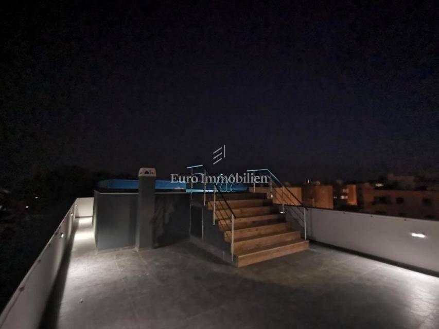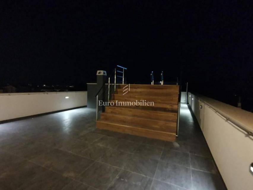 Prodaje se komforan stan na 2.katu nove stambene zgrade na Belafuži u Zadru. Sastoji se od kuhinje s blagovaonicom i dnevnim boravkom, kupaonice, toaleta, tri spavaće sobe, dva hodnika, dvije natkrivene lođe, spremišta, bazena i terase na krovu, ostave, te nenatkrivene terase. Na raspolaganju su dva parkirna mjesta.