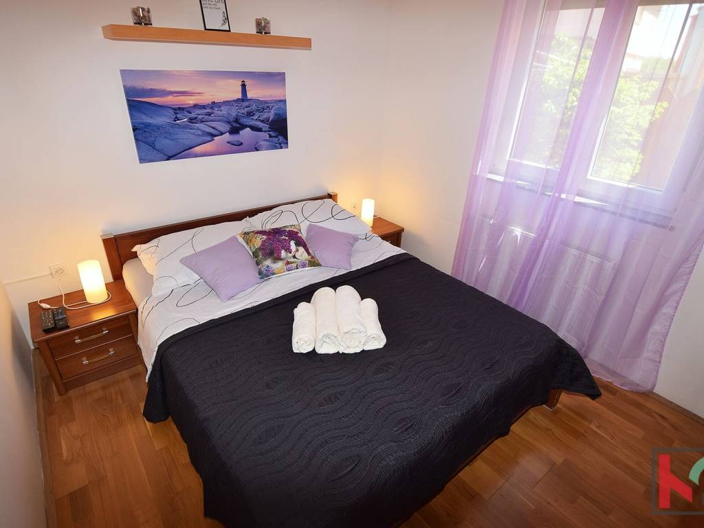 Na pet minuta vožnje od centra grada prodaje se iznimno ugodan stan u prizemlju stambene zgrade, ukupne površine 71,5 m2, s privatnim dvorištem. Stan je pažljivo raspoređen i sastoji se od dvije spavaće sobe, prostranog dnevnog boravka povezanog s kuhinjom i blagovaonicom, kupaonice te natkrivene terase idealne za opuštanje tijekom cijele godine.