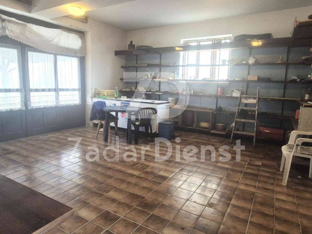 Prizemlje – prostrani dnevni boravak, 2 spavaće sobe, kupaonica i ostava.