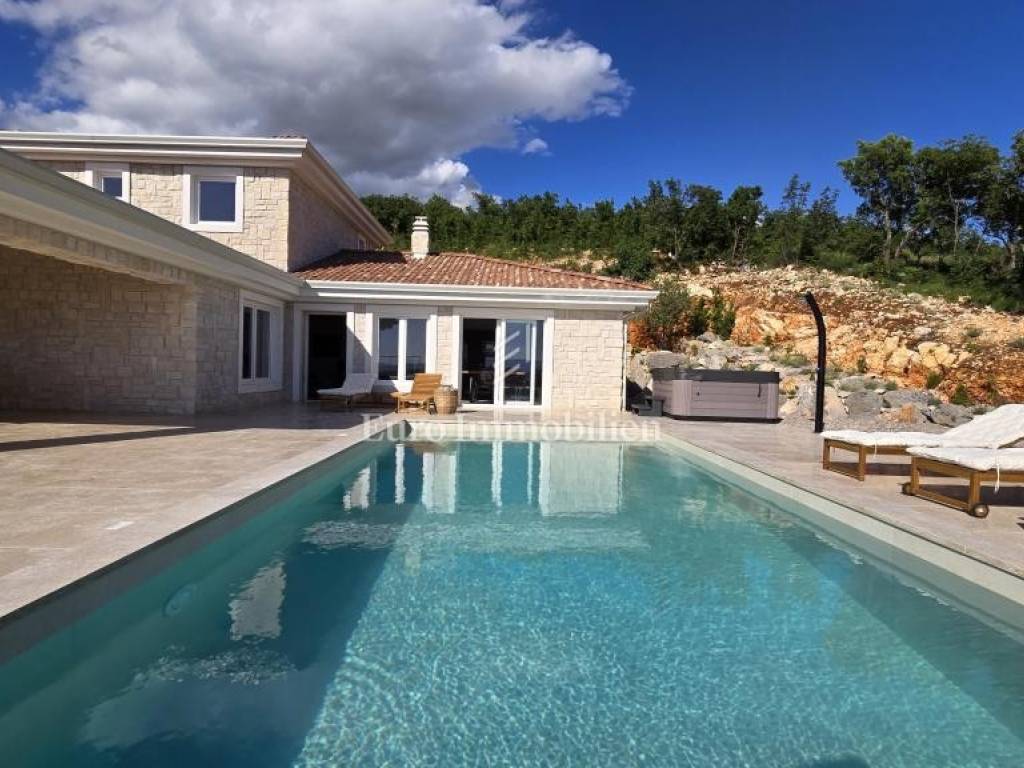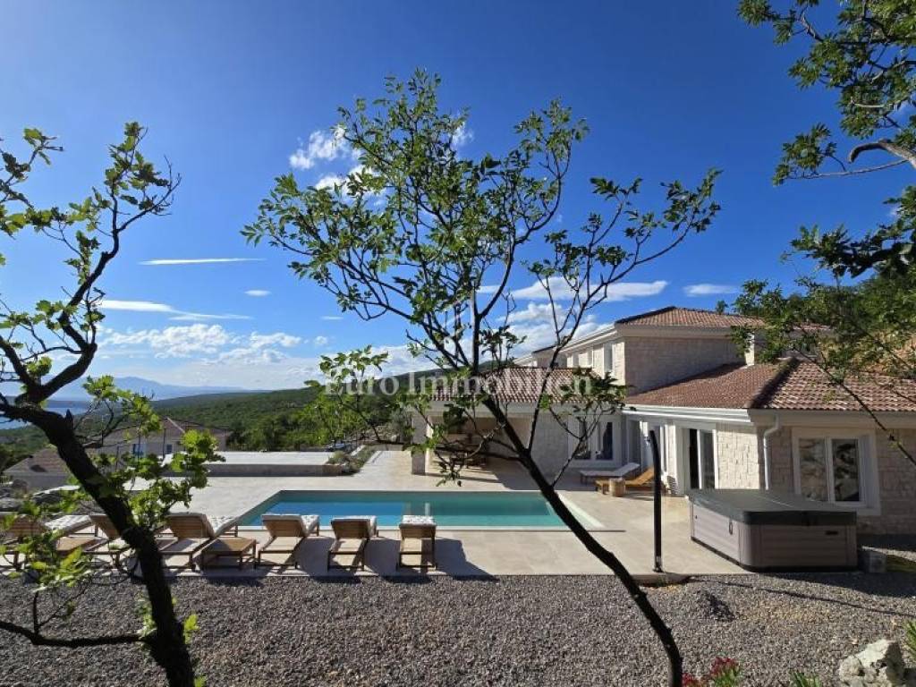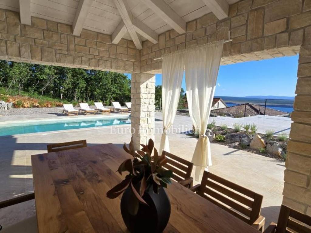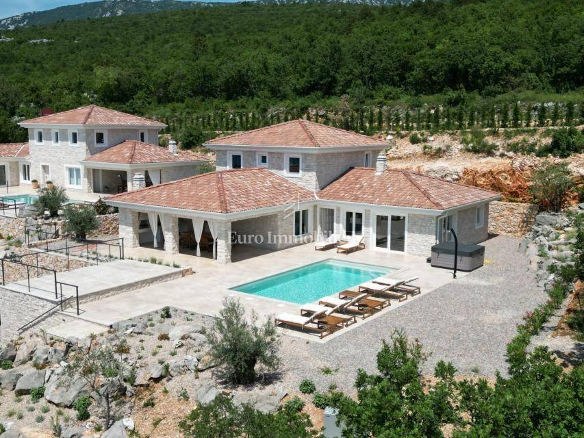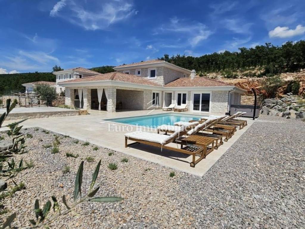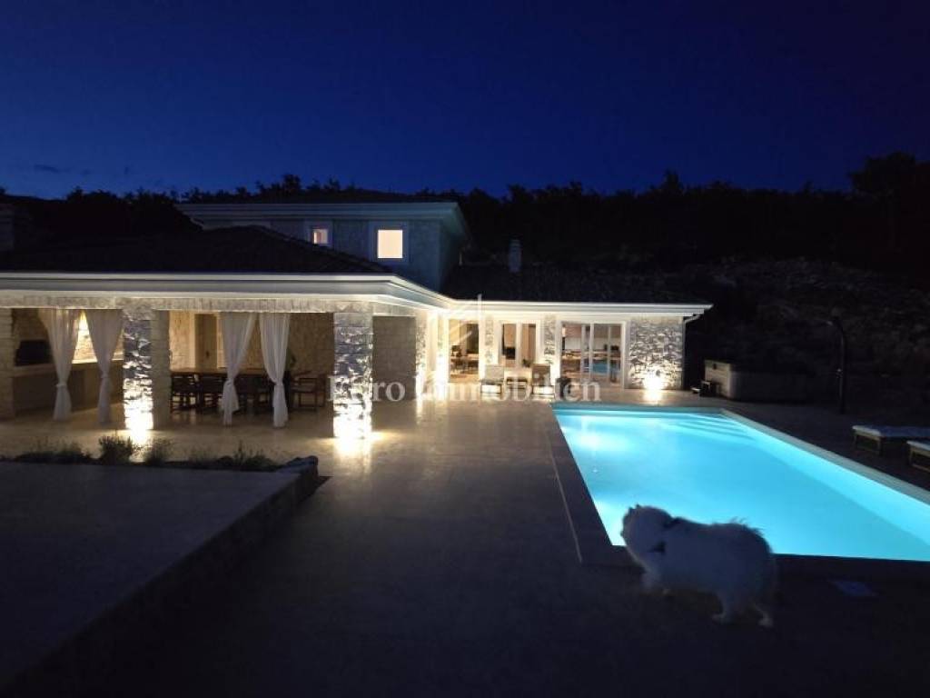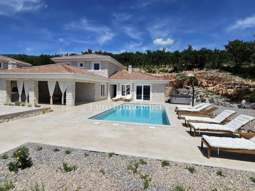 Prodaje se kamena villa rustikalnog stila, građena istarskim kamenom iz mjesta Kanfanar. Ima površinu 200 m2 + 36 m2 garaže + 10 m2 strojarnice + 35 m2 grijanog bazena s elektrolizom vode i postavljenom keramikom u bazenu, dok je ukupna površina zemljišta, koja je uređena autohtonim mediteranskim biljem, maslinama, prirodnim stijenama čak 1.200 m2. Smještena na jednoj od najljepših lokacija na Kvarneru, u mjestu Jadranovo, vila predstavlja savršen spoj tradicije i luksuza. Villa ima smještajni kapacitet za osam osoba i ima četiri spavaće sobe s ensuite kupaonicama. U prizemlju ville nalaze se dvije spavaće sobe, prostrani osvijetljeni dnevni boravak s dodatnim kaučem na razvlačenje za dvije osobe, te moderno opremljena kuhinja s blagovaonicom. Na gornjem se katu nalaze još dvije spavaće sobe s panoramskim pogledom na more. Čitav prostor je klimatiziran, ugrađena je dizalica topline (podno grijanje) i kamin. Na terasi popločanoj kamenom nalazi se prekrasni, keramikom obloženi grijani bazen s elektrolizom vode, veličine 35 m2 i dubine 1,7 m i hidromasažna kada (Jacuzzi) za 6 osoba, osam ležaljki za sunčanje s jastucima, vanjski stol za jelo od slavonskog hrasta, te vanjski zidani kameni roštilj. U potpuno ograđenom dvorištu ville na raspolaganju su i dva parkirna mjesta u garaži. Villa je smještena na izoliranoj lokaciji daleko od gradske buke, te je okružena prirodom. Najbliža plaža udaljena je 900 m.