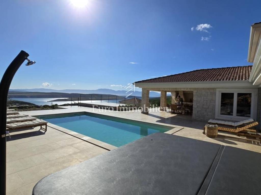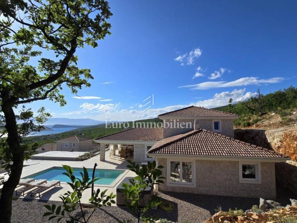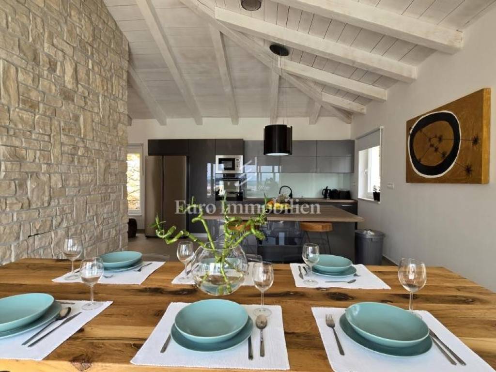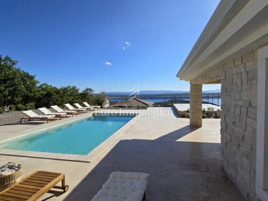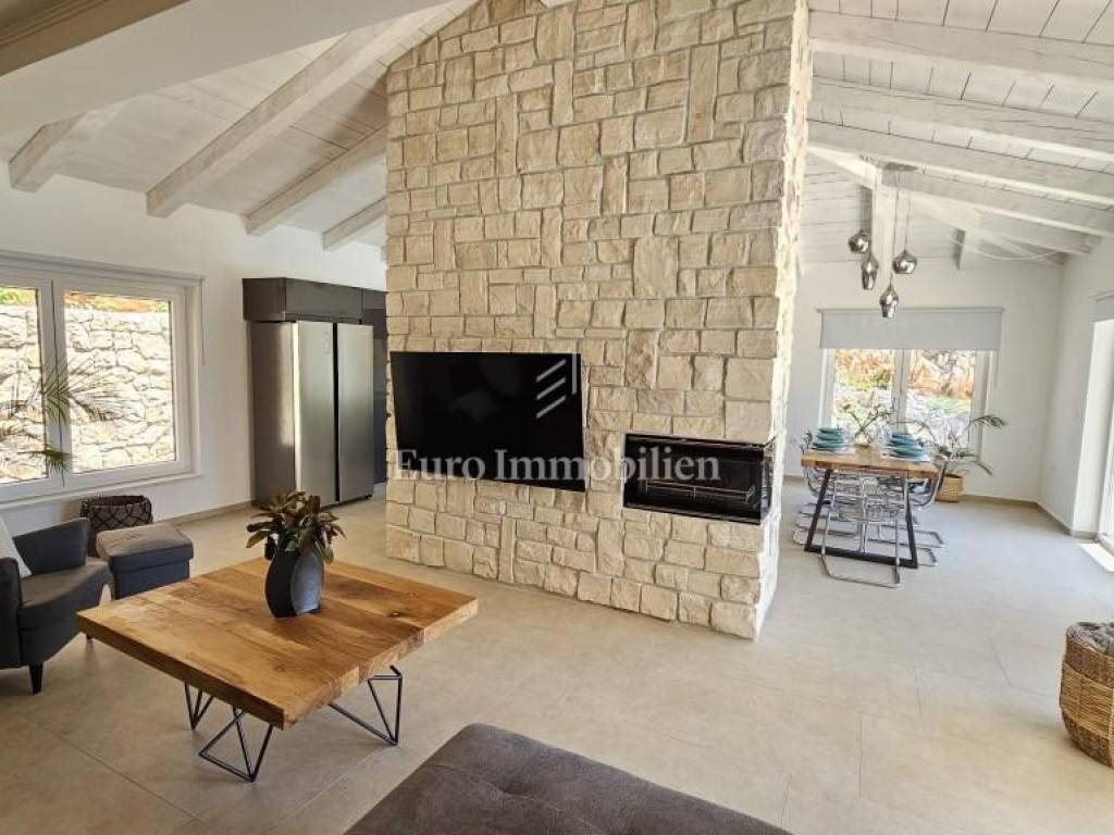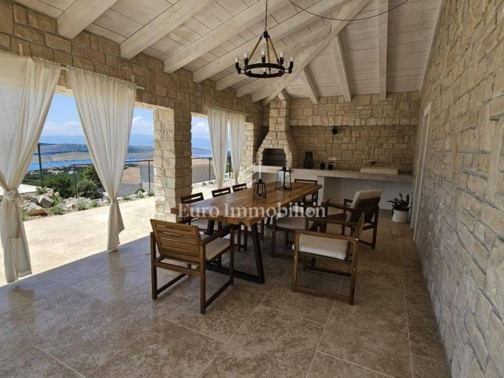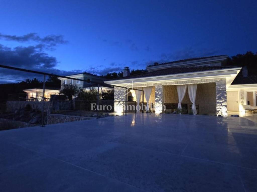Prodaje se kamena villa rustikalnog stila, građena istarskim kamenom iz mjesta Kanfanar. Ima površinu 200 m2 + 36 m2 garaže + 10 m2 strojarnice + 35 m2 grijanog bazena s elektrolizom vode i postavljenom keramikom u bazenu, dok je ukupna površina zemljišta, koja je uređena autohtonim mediteranskim biljem, maslinama, prirodnim stijenama čak 1.200 m2. Smještena na jednoj od najljepših lokacija na Kvarneru, u mjestu Jadranovo, vila predstavlja savršen spoj tradicije i luksuza. Villa ima smještajni kapacitet za osam osoba i ima četiri spavaće sobe s ensuite kupaonicama. U prizemlju ville nalaze se dvije spavaće sobe, prostrani osvijetljeni dnevni boravak s dodatnim kaučem na razvlačenje za dvije osobe, te moderno opremljena kuhinja s blagovaonicom. Na gornjem se katu nalaze još dvije spavaće sobe s panoramskim pogledom na more. Čitav prostor je klimatiziran, ugrađena je dizalica topline (podno grijanje) i kamin. Na terasi popločanoj kamenom nalazi se prekrasni, keramikom obloženi grijani bazen s elektrolizom vode, veličine 35 m2 i dubine 1,7 m i hidromasažna kada (Jacuzzi) za 6 osoba, osam ležaljki za sunčanje s jastucima, vanjski stol za jelo od slavonskog hrasta, te vanjski zidani kameni roštilj. U potpuno ograđenom dvorištu ville na raspolaganju su i dva parkirna mjesta u garaži. Villa je smještena na izoliranoj lokaciji daleko od gradske buke, te je okružena prirodom. Najbliža plaža udaljena je 900 m.