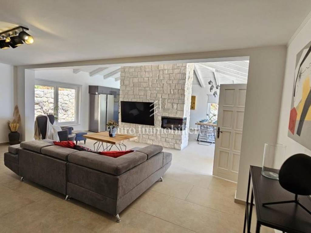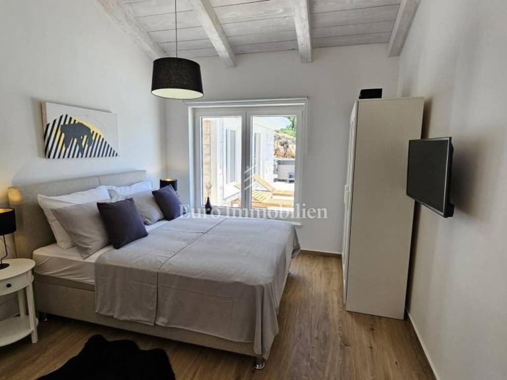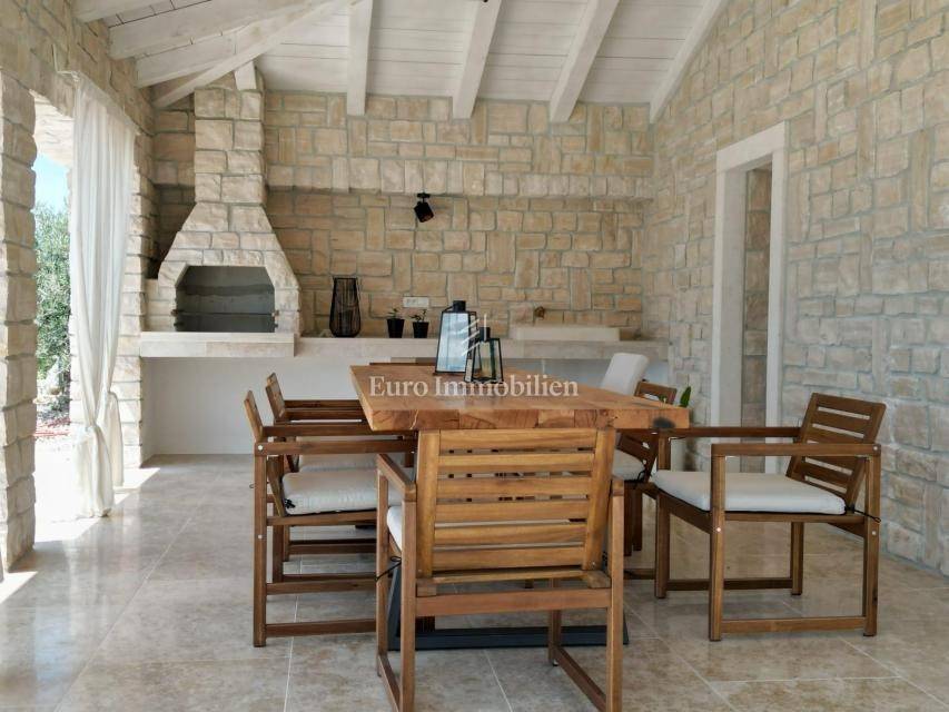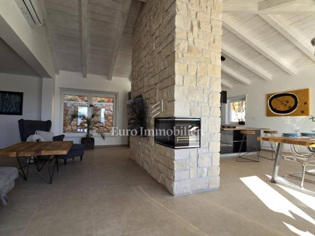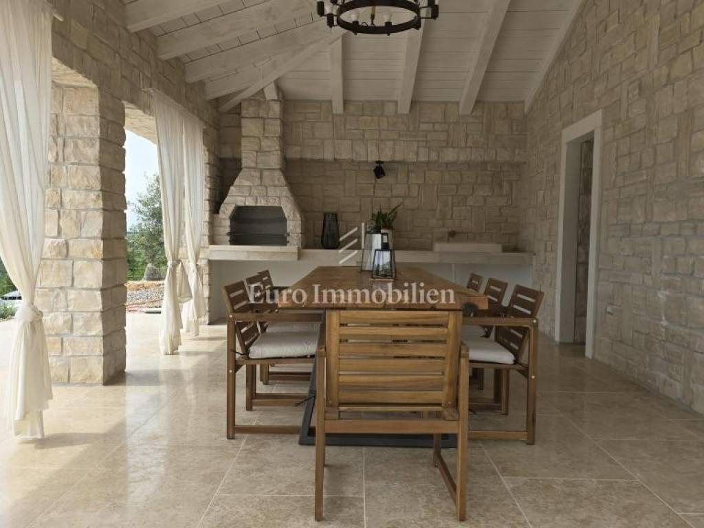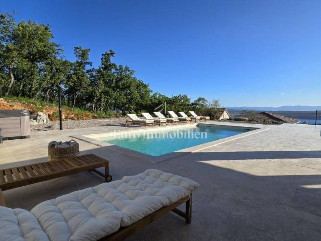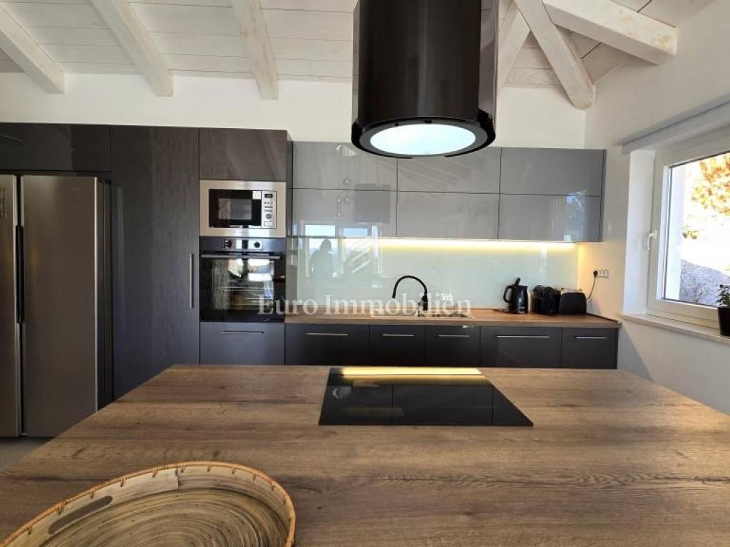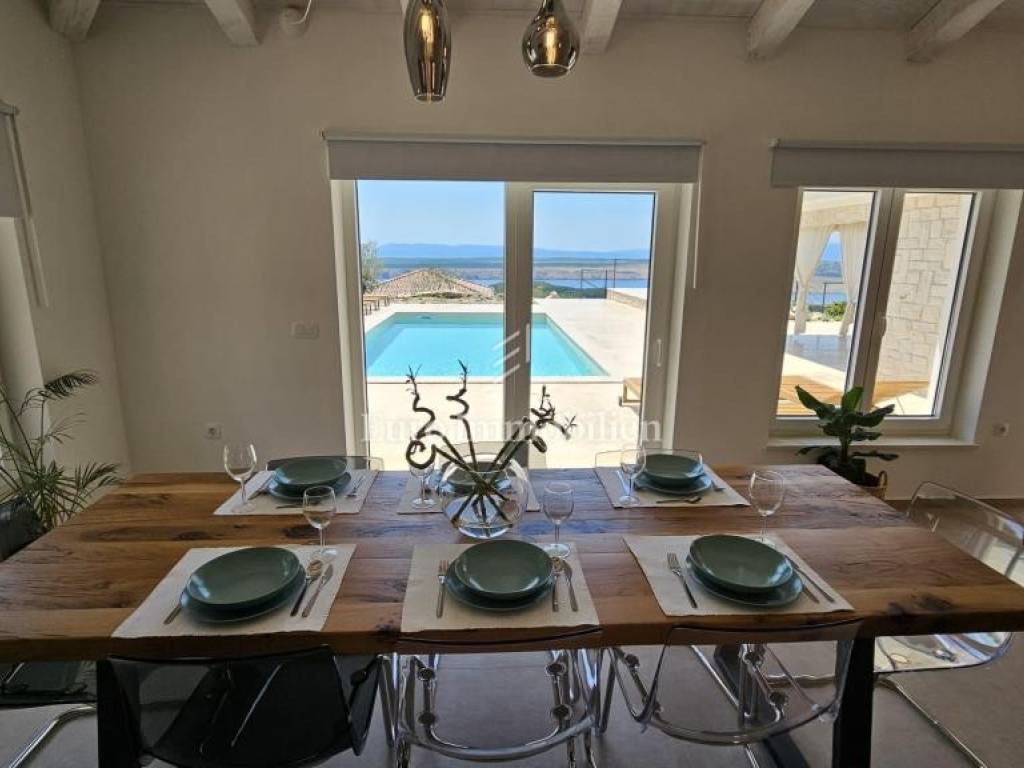 Prodaje se kamena villa rustikalnog stila, građena istarskim kamenom iz mjesta Kanfanar. Ima površinu 200 m2 + 36 m2 garaže + 10 m2 strojarnice + 35 m2 grijanog bazena s elektrolizom vode i postavljenom keramikom u bazenu, dok je ukupna površina zemljišta, koja je uređena autohtonim mediteranskim biljem, maslinama, prirodnim stijenama čak 1.200 m2. Smještena na jednoj od najljepših lokacija na Kvarneru, u mjestu Jadranovo, vila predstavlja savršen spoj tradicije i luksuza. Villa ima smještajni kapacitet za osam osoba i ima četiri spavaće sobe s ensuite kupaonicama. U prizemlju ville nalaze se dvije spavaće sobe, prostrani osvijetljeni dnevni boravak s dodatnim kaučem na razvlačenje za dvije osobe, te moderno opremljena kuhinja s blagovaonicom. Na gornjem se katu nalaze još dvije spavaće sobe s panoramskim pogledom na more. Čitav prostor je klimatiziran, ugrađena je dizalica topline (podno grijanje) i kamin. Na terasi popločanoj kamenom nalazi se prekrasni, keramikom obloženi grijani bazen s elektrolizom vode, veličine 35 m2 i dubine 1,7 m i hidromasažna kada (Jacuzzi) za 6 osoba, osam ležaljki za sunčanje s jastucima, vanjski stol za jelo od slavonskog hrasta, te vanjski zidani kameni roštilj. U potpuno ograđenom dvorištu ville na raspolaganju su i dva parkirna mjesta u garaži. Villa je smještena na izoliranoj lokaciji daleko od gradske buke, te je okružena prirodom. Najbliža plaža udaljena je 900 m.