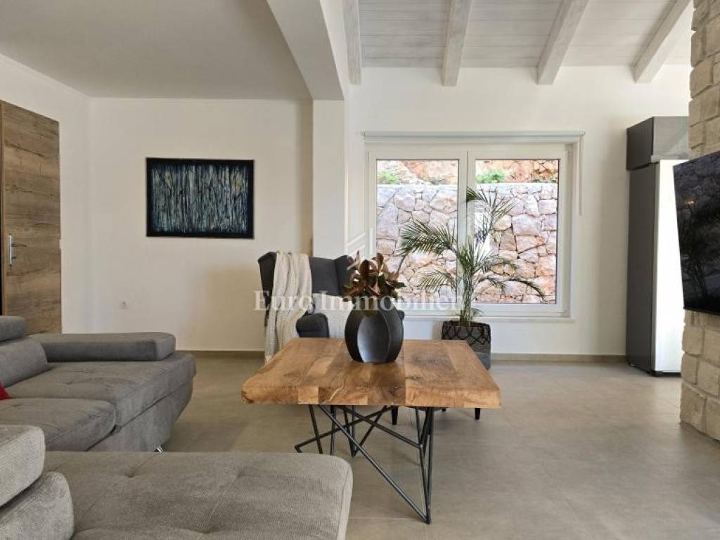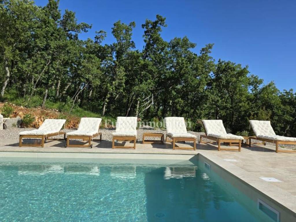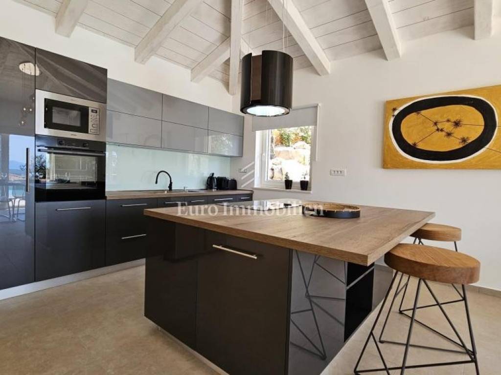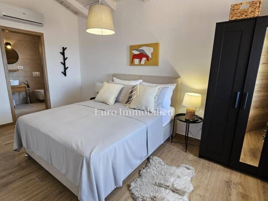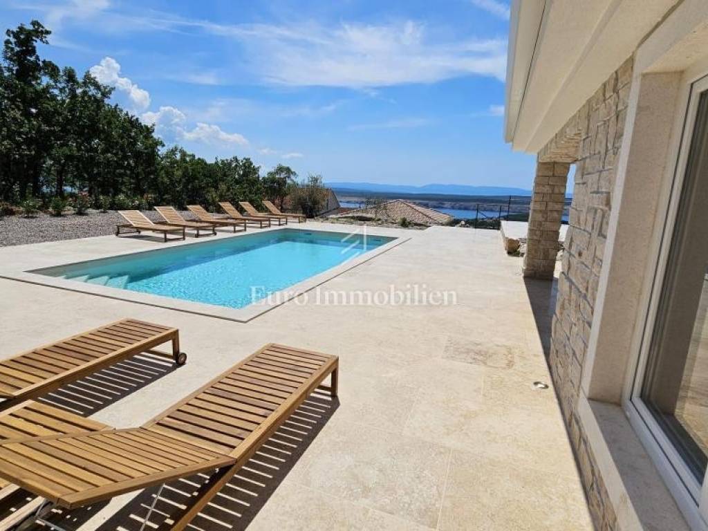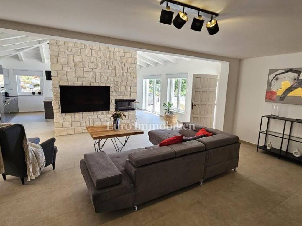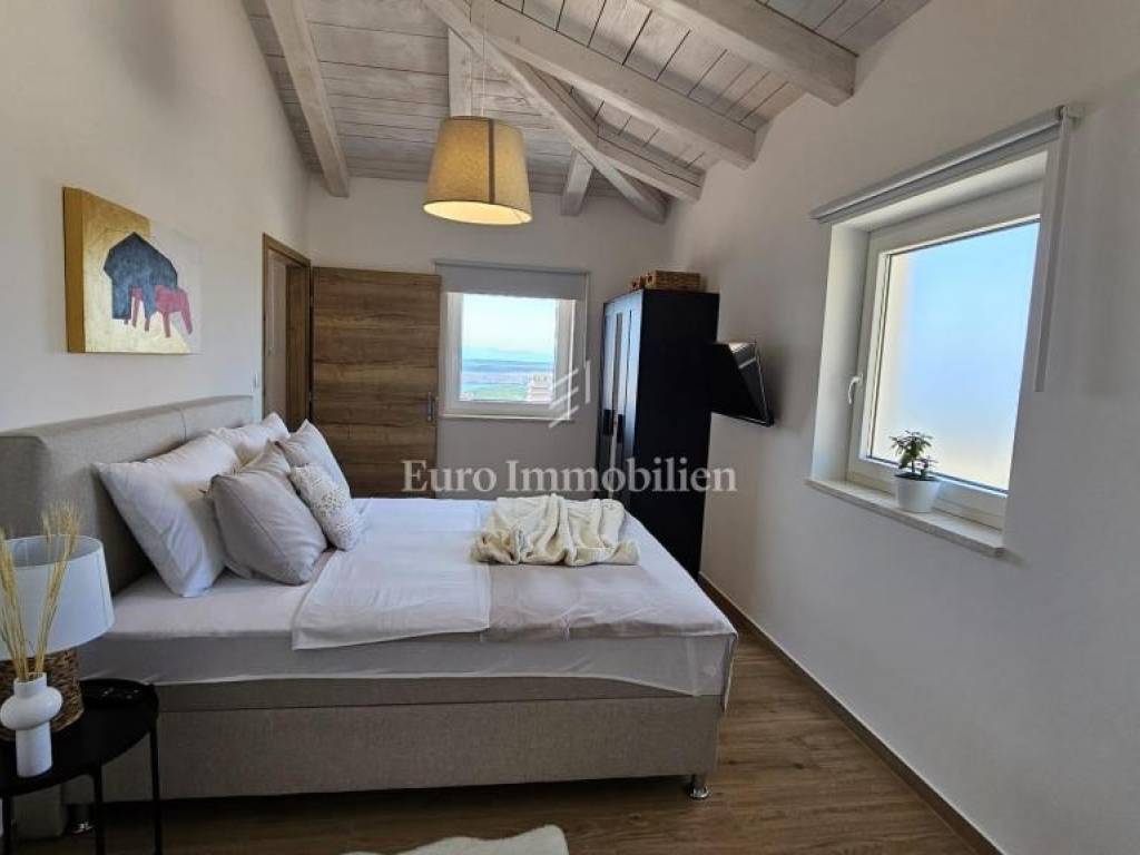 Prodaje se kamena villa rustikalnog stila, građena istarskim kamenom iz mjesta Kanfanar. Ima površinu 200 m2 + 36 m2 garaže + 10 m2 strojarnice + 35 m2 grijanog bazena s elektrolizom vode i postavljenom keramikom u bazenu, dok je ukupna površina zemljišta, koja je uređena autohtonim mediteranskim biljem, maslinama, prirodnim stijenama čak 1.200 m2. Smještena na jednoj od najljepših lokacija na Kvarneru, u mjestu Jadranovo, vila predstavlja savršen spoj tradicije i luksuza. Villa ima smještajni kapacitet za osam osoba i ima četiri spavaće sobe s ensuite kupaonicama. U prizemlju ville nalaze se dvije spavaće sobe, prostrani osvijetljeni dnevni boravak s dodatnim kaučem na razvlačenje za dvije osobe, te moderno opremljena kuhinja s blagovaonicom. Na gornjem se katu nalaze još dvije spavaće sobe s panoramskim pogledom na more. Čitav prostor je klimatiziran, ugrađena je dizalica topline (podno grijanje) i kamin. Na terasi popločanoj kamenom nalazi se prekrasni, keramikom obloženi grijani bazen s elektrolizom vode, veličine 35 m2 i dubine 1,7 m i hidromasažna kada (Jacuzzi) za 6 osoba, osam ležaljki za sunčanje s jastucima, vanjski stol za jelo od slavonskog hrasta, te vanjski zidani kameni roštilj. U potpuno ograđenom dvorištu ville na raspolaganju su i dva parkirna mjesta u garaži. Villa je smještena na izoliranoj lokaciji daleko od gradske buke, te je okružena prirodom. Najbliža plaža udaljena je 900 m.