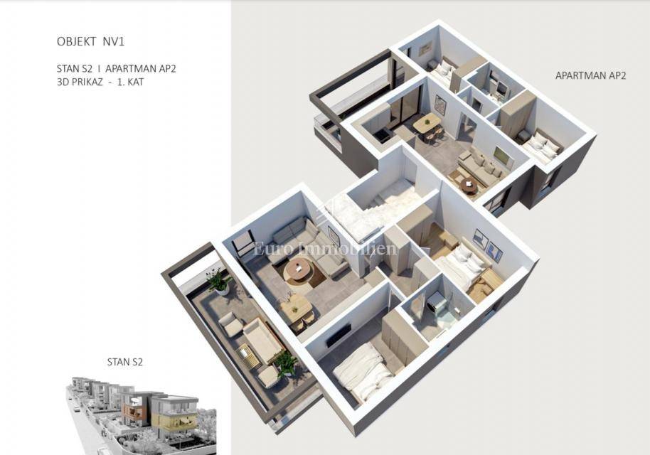 Objekt je sa 6 stanova, od kojih svi imaju vlastito parkirno mjesto te je objekt u sustavu PDVa.