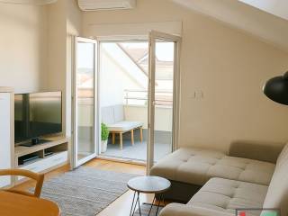 Stan se sastoji od dvije spavaće sobe i dnevnog boravka, pružajući optimalnu organizaciju prostora za obiteljski život ili rad od kuće. Pripada mu terasa koja omogućuje uživanje na otvorenom i dodatni prostor za opuštanje. Stan je opremljen kuhinjom s aparatima, perilicom posuđa, perilicom rublja, TV-om, krevetom i radnim stolom.