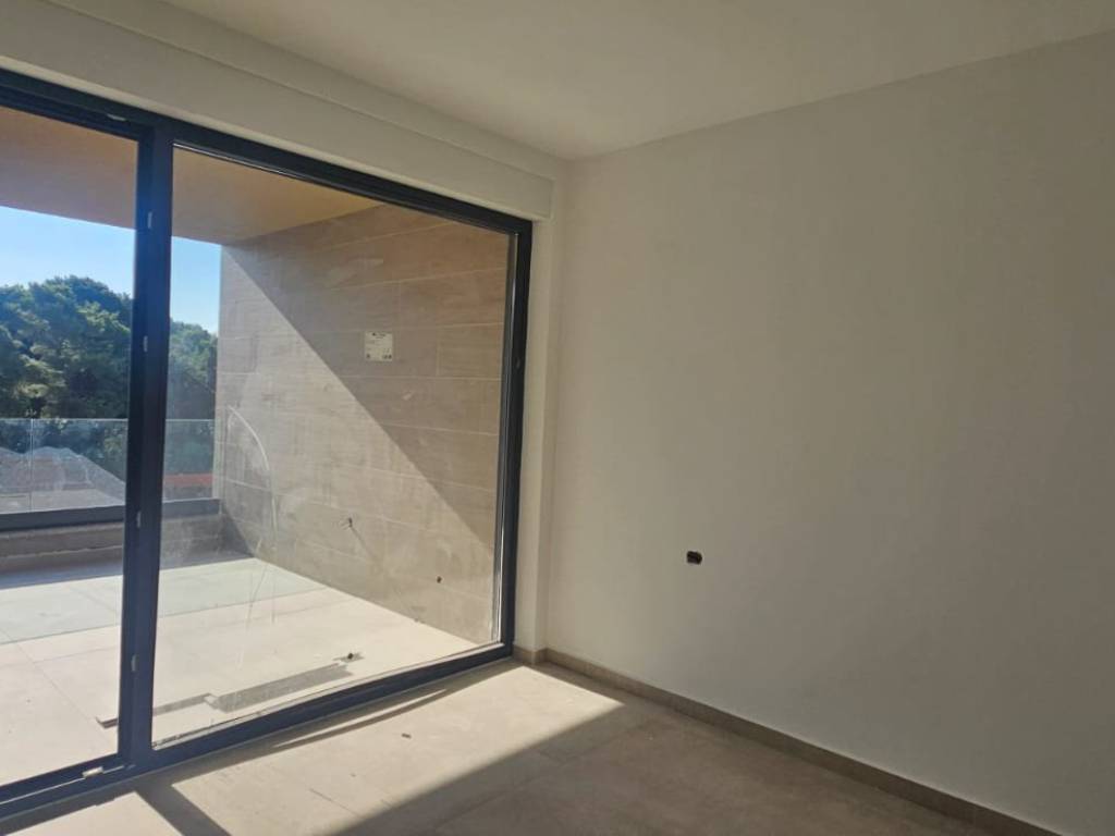 Predmetni stan se nalazi se na prvom katu i ima 86,50m2 te se sastoji od hodnika, natkrivene sunčane terase, 2 spavaće sobe, open space prostora kuhinje i dnevnog boravka koji zajedno imaju 40m2, kupaone i wc-a.