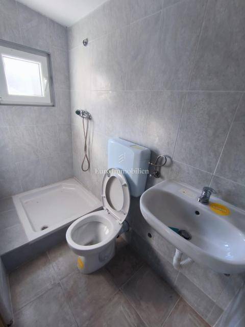 Stan se sastoji od dvije stambene jedinice: 2S stana od 48,22 m² i studio apartmana od 12,60 m². Obje stambene jedinice dijele prostrani balkon, a s terase i balkona pruža se otvoreni pogled na more. Stan je renoviran 2023. godine. Stanu pripada parkirno mjesto u sklopu okućnice. Dokumentacija je uredna.