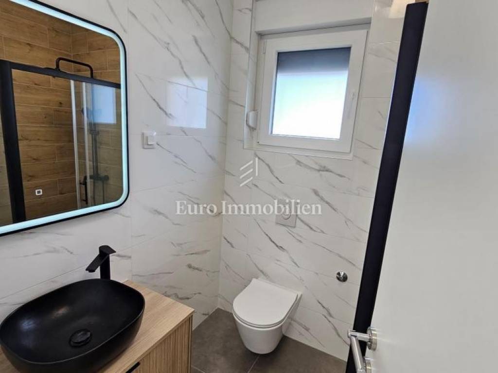 Prodaje se stan na drugom katu u novogradnji u Novom Vinodolskom s prekrasnim pogledom na more. Stan ima neto površinu od 63,52 m² te se sastoji od dvije spavaće sobe, kupaonice, kuhinje, dnevnog boravka, ostave i loggie. Stanu pripada jedno parkirno mjesto.