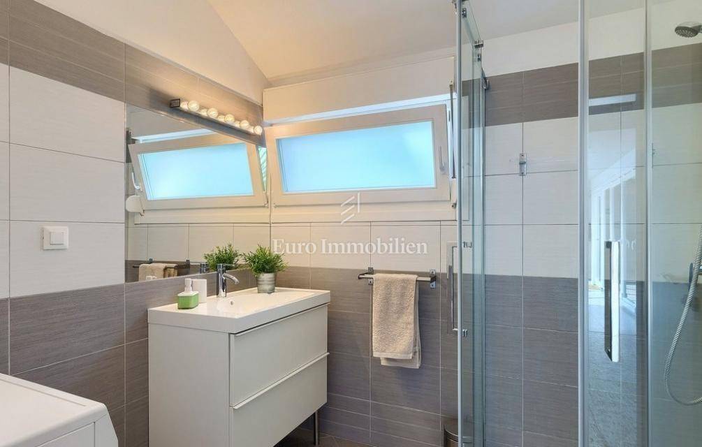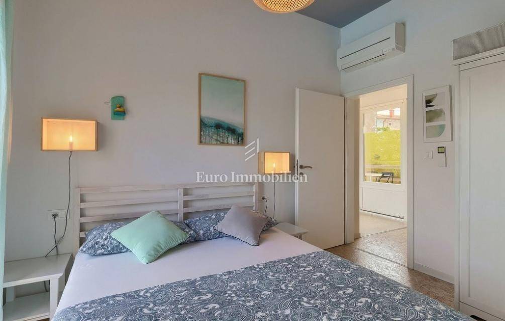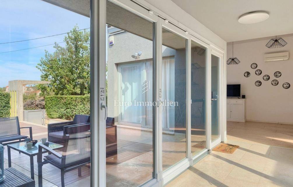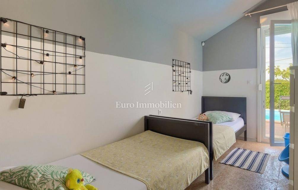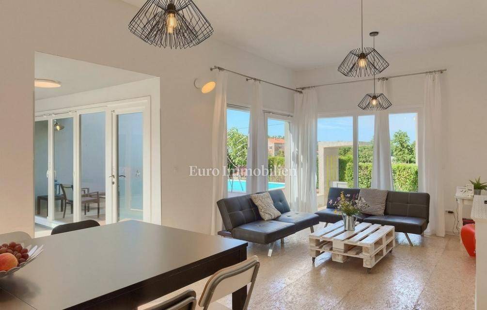 Kuća se sastoji od potpuno opremljene kuhinje s blagovaonicom i dnevnim boravkom, te odvojenog gostinjskog WC-a, tri spavaće sobe i dvije kupaonice. Grijanje i hlađenje omogućeno je putem inverter klima uređaja. Prodaje se potpuno namještena.