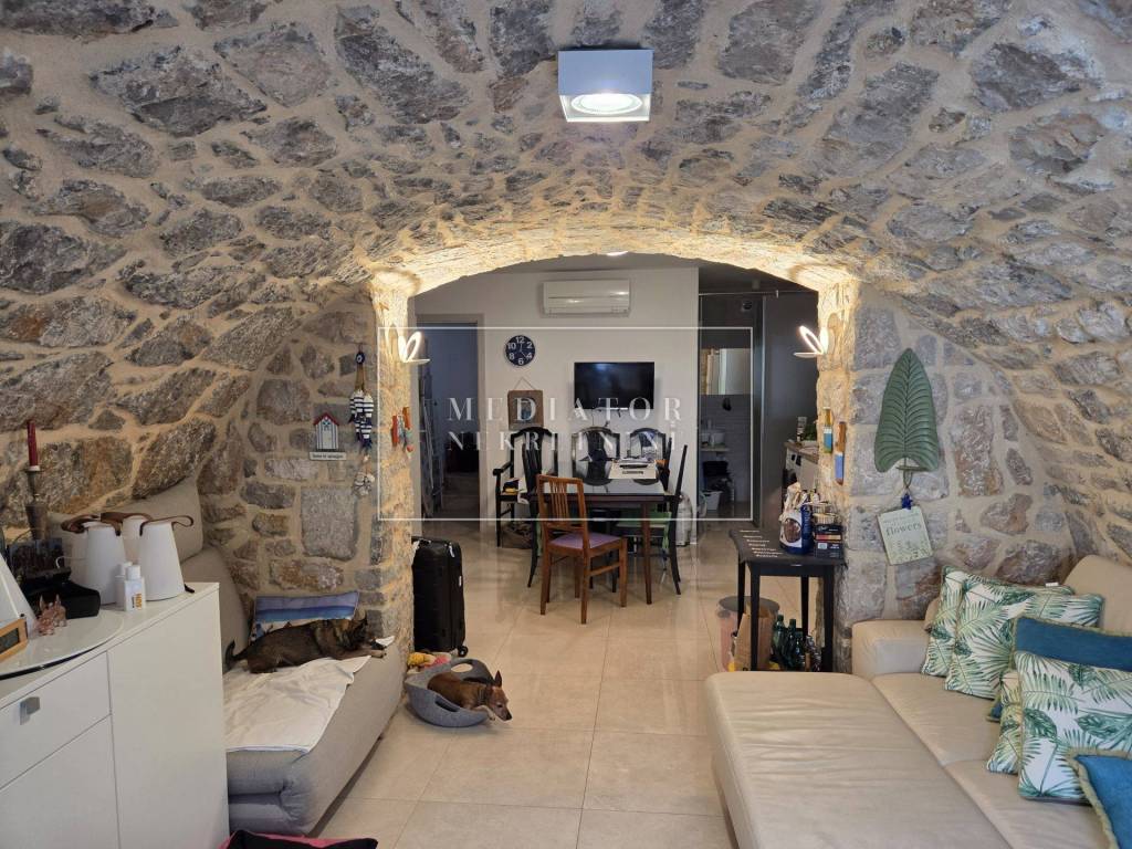 U ponudi Mediator nekretnina pronađite izvanrednu nekretninu na otoku Krku, u Puntu, smještenu u samom srcu mjesta, svega 70 metara od mora i u neposrednoj blizini marine. Radi se o staroj kamenoj kući koja je potpuno renovirana, s interijerom u kamenu i vrhunskim materijalima te stolarijom visoke kvalitete, što osigurava autentičan, ali luksuzan dojam.