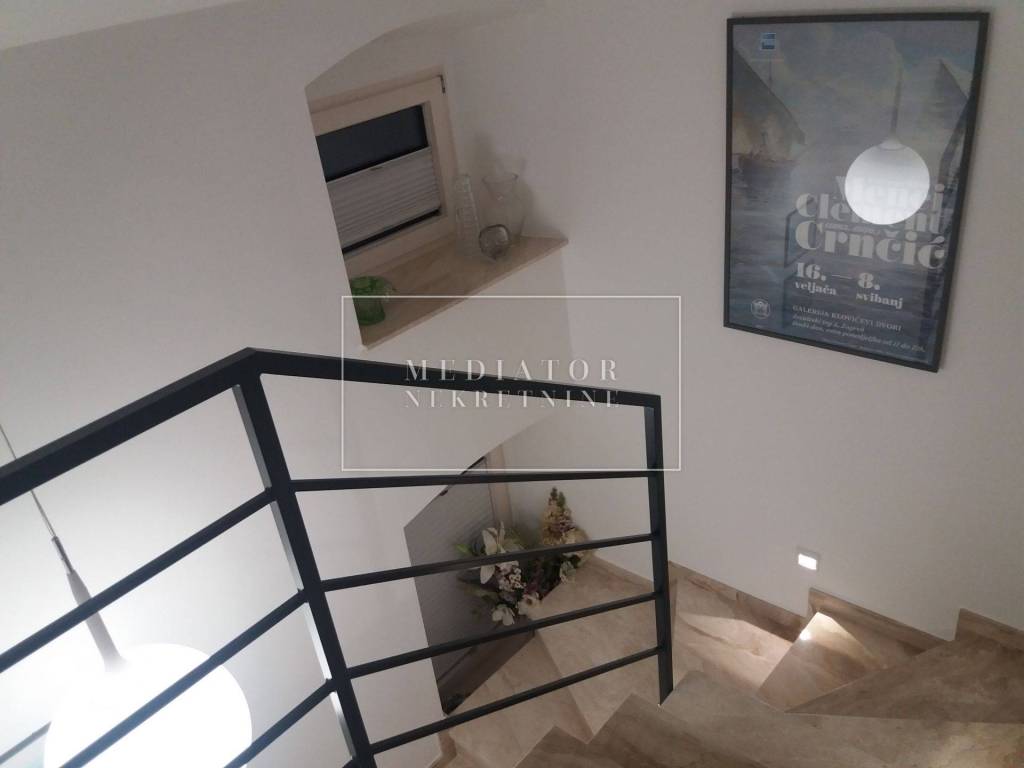 Kuća se sastoji od četiri samostalne jedinice. U prizemlju se nalaze dvije prostorije koje funkcioniraju kao konoba, dok se iznad njih prostiru tri etaže koje čine stambeni prostor sa sobama i vlastitim kupaonicama. Nekretnina sadrži dva prostrana terasa i vrt, a ukupna bruto korisna površina iznosi 256,3 m², dok stambeni prostor iznosi 120 m².