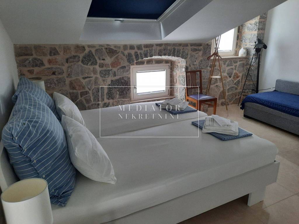Gradnja je izvedena od visokokvalitetnih materijala, a kuća je opremljena namještajem po mjeri, u potpunosti spremna za useljenje ili turistički najam. Ova nekretnina je spomenik kulture te je uređena i klasificirana za najam kao luksuzni objekt sa 4 zvjezdice, što je čini izvanrednom investicijom za zahtjevne goste i ljubitelje autentičnog mediteranskog stila.