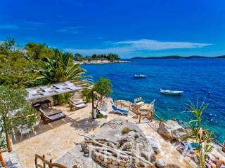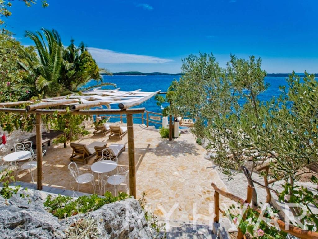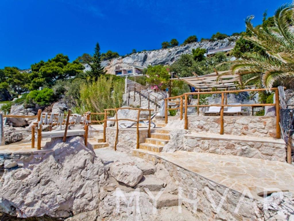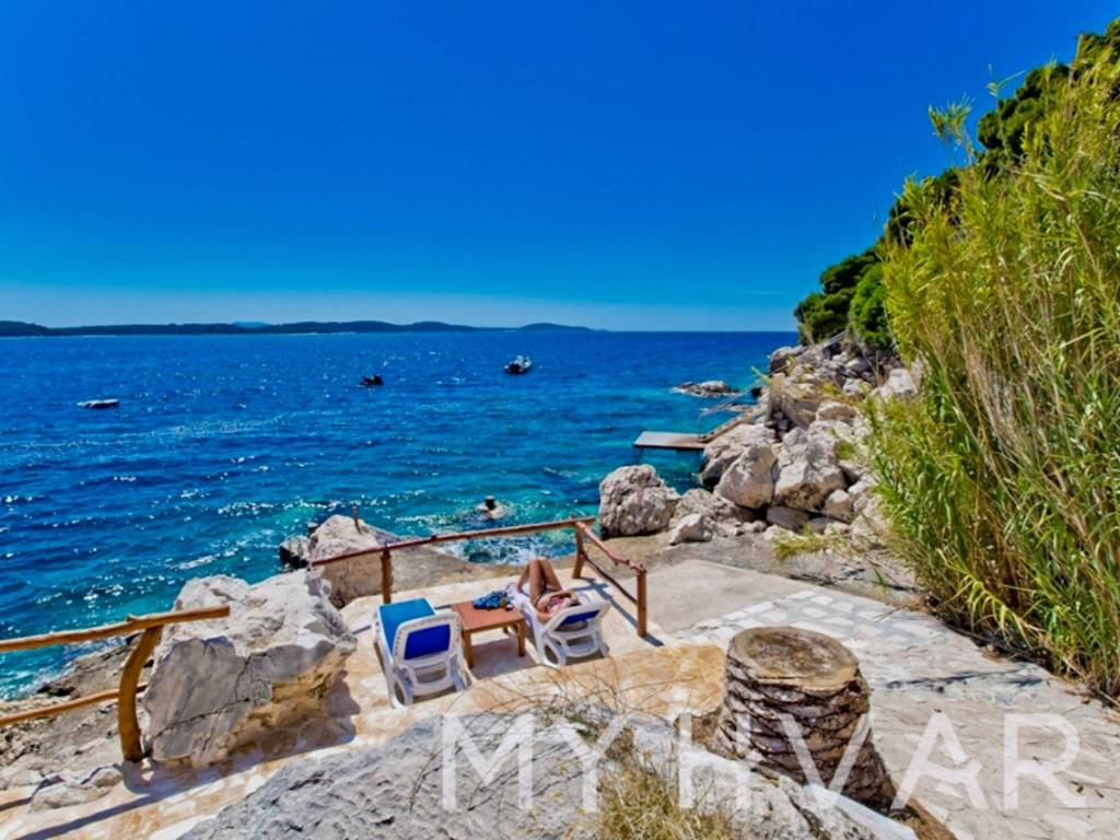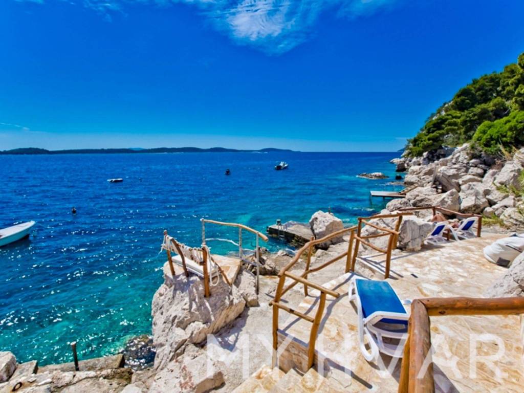 Ova samostojeća kuća u Hvaru, smještena tik uz plažu i prvi red do mora, nudi izniman doživljaj življenja. Nekretnina uključuje šest apartmana i tri dodatne strukture, pružajući dovoljno prostora i fleksibilnost. Uživajte u životu na otvorenom s četiri vanjska kamina i privatnom plažom, zajedno s pogodnostima tri veza za brodove i dva parkirna mjesta. Ovo jedinstveno imanje uz plažu kombinira udobnost, luksuz i prekrasan pogled na more, što ga čini idealnim ulaganjem ili osobnim utočištem.