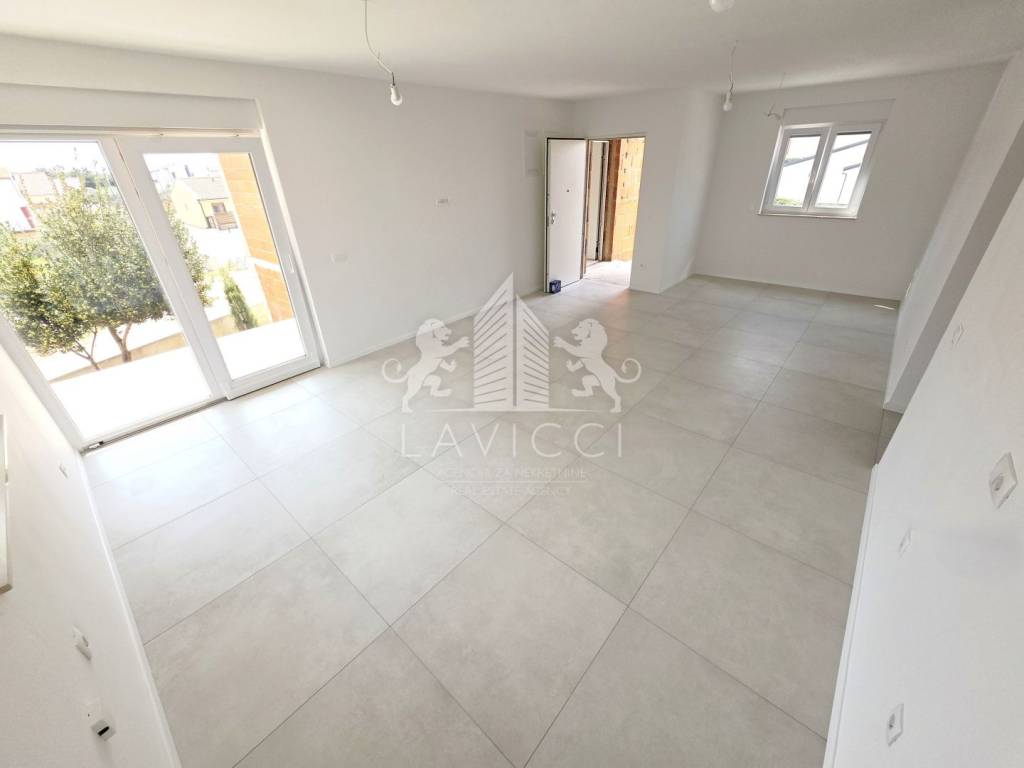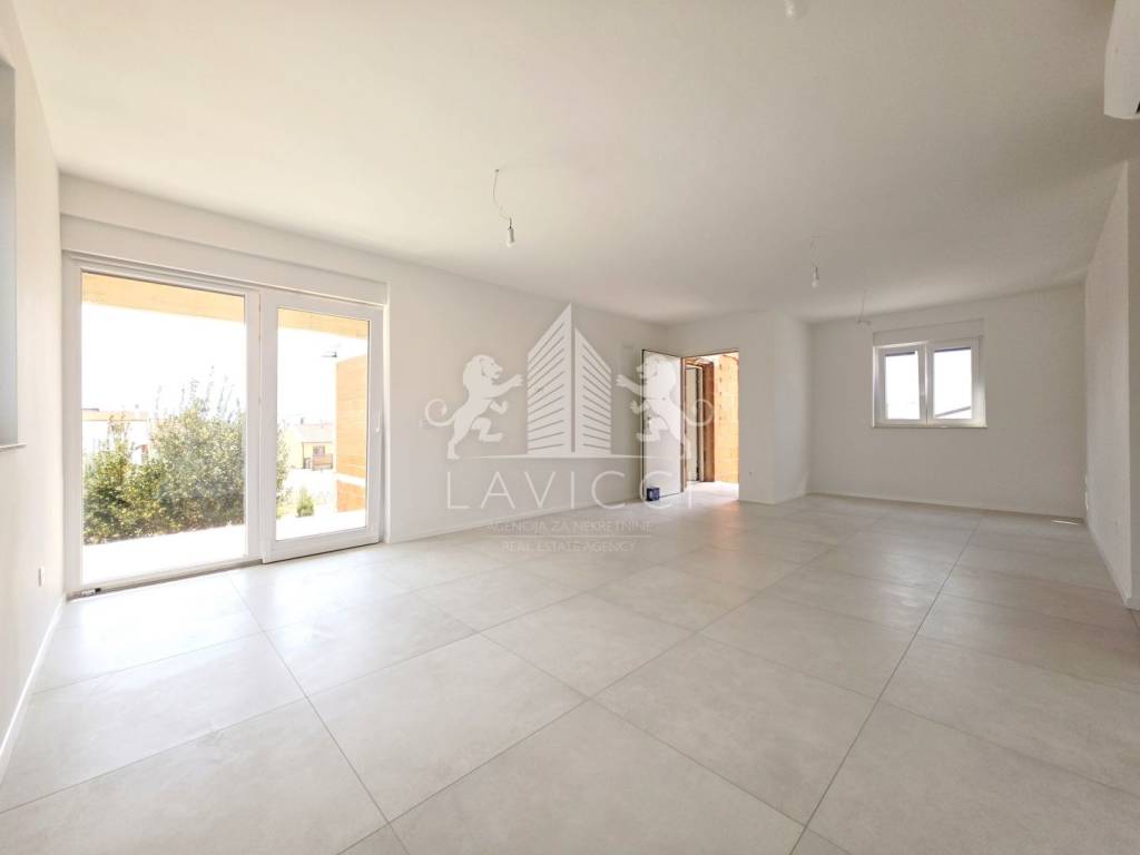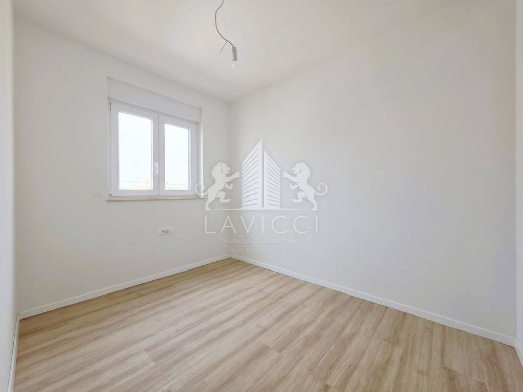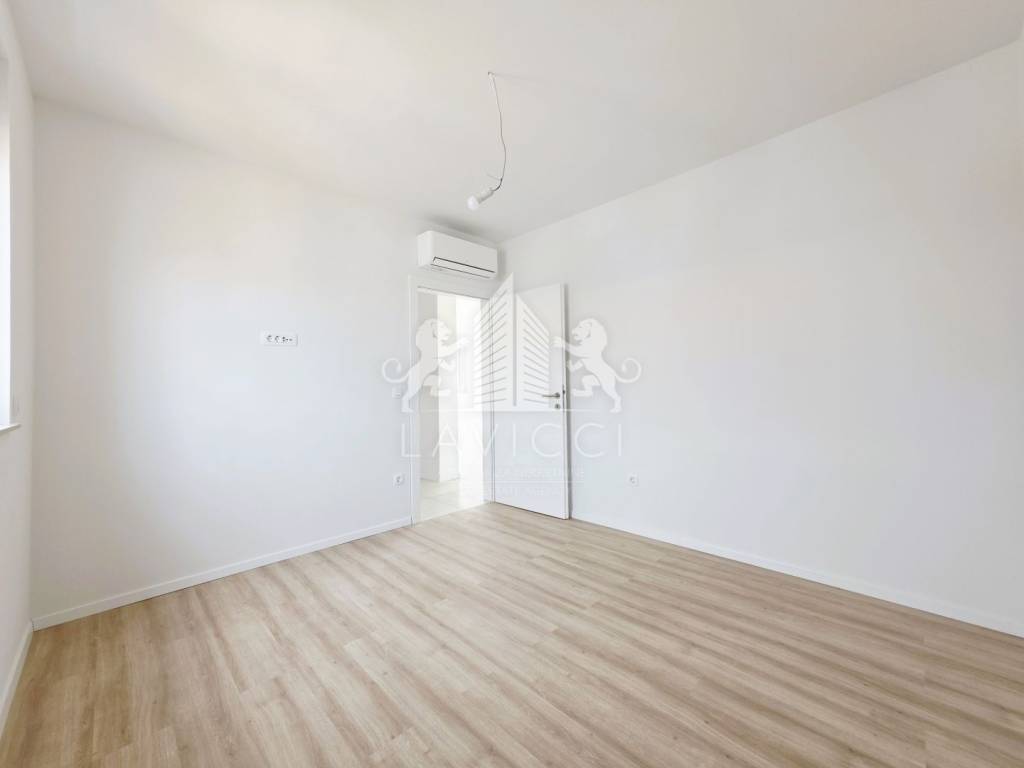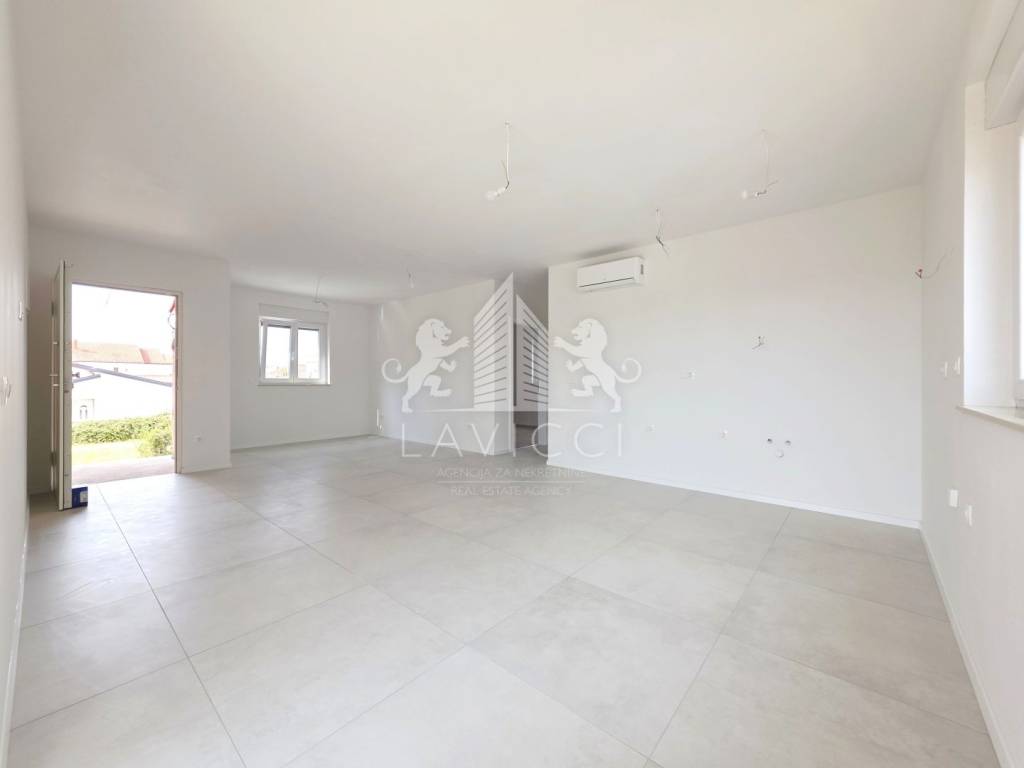 Apartman se nalazi na katu zgrade i ima vlastiti ulaz, što dodatno osigurava privatnost. Sastoji se od prostranog i funkcionalnog open space dnevnog prostora (dnevni boravak, kuhinja i blagovaonica) s izlazom na veliku natkrivenu terasu. Apartman ima dvije spavaće sobe, uz mogućnost preinake u trosoban raspored ili dogradnje dodatne sobe, što pruža dodatnu fleksibilnost i povećava vrijednost nekretnine. Također uključuje kupaonicu s WC-om. Ukupna tlocrtna površina iznosi 65,63 m2.