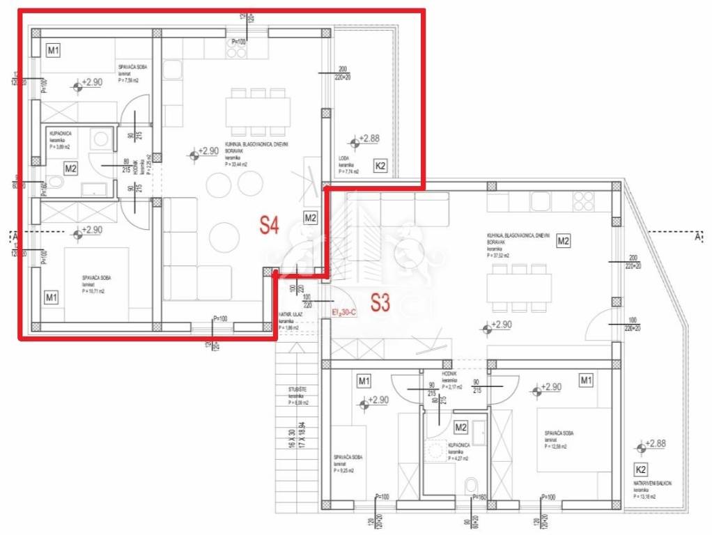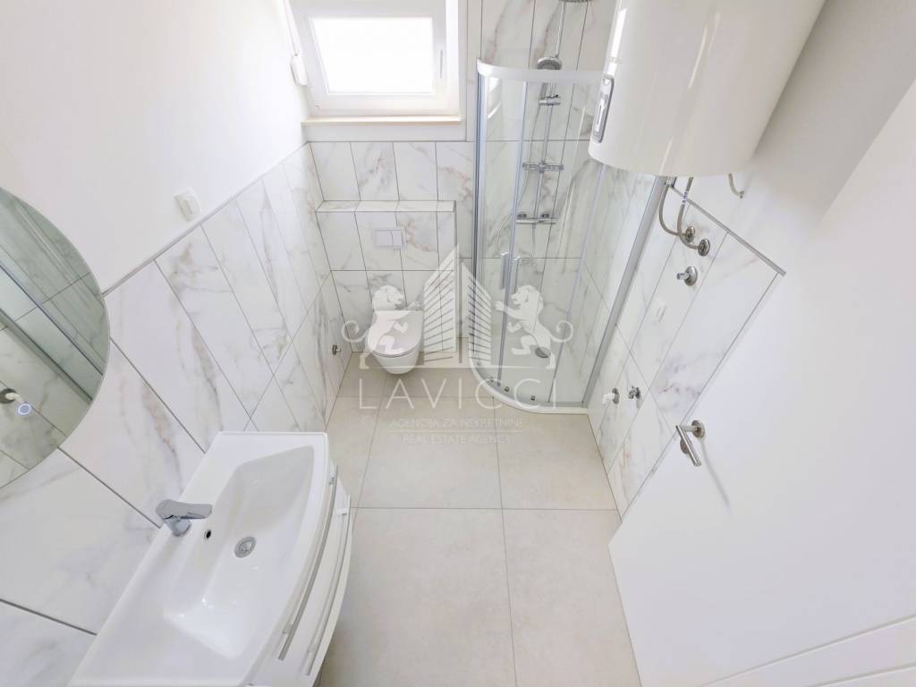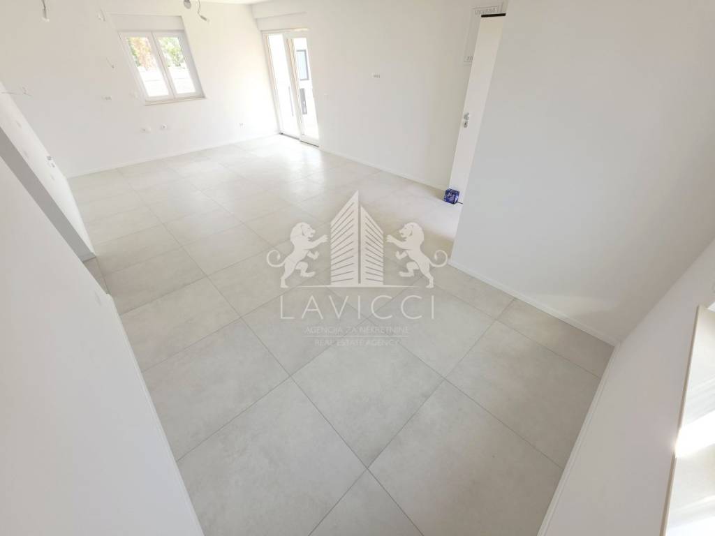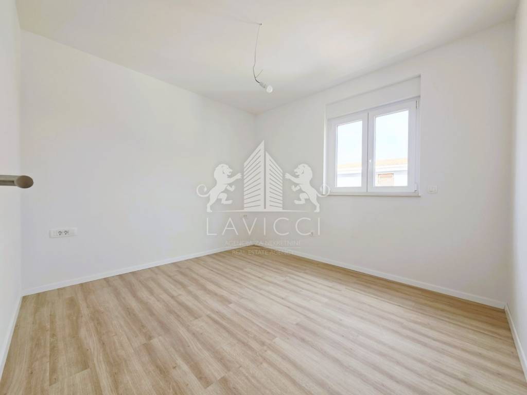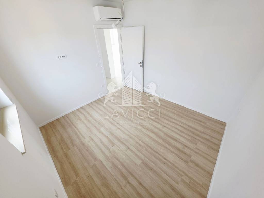 Apartman se nalazi na katu zgrade i ima vlastiti ulaz, što dodatno osigurava privatnost. Sastoji se od prostranog i funkcionalnog open space dnevnog prostora (dnevni boravak, kuhinja i blagovaonica) s izlazom na veliku natkrivenu terasu. Apartman ima dvije spavaće sobe, uz mogućnost preinake u trosoban raspored ili dogradnje dodatne sobe, što pruža dodatnu fleksibilnost i povećava vrijednost nekretnine. Također uključuje kupaonicu s WC-om. Ukupna tlocrtna površina iznosi 65,63 m2.