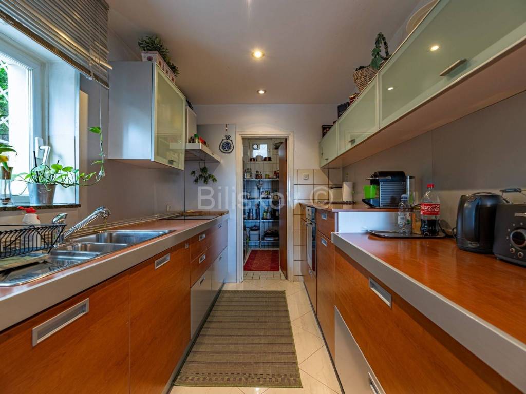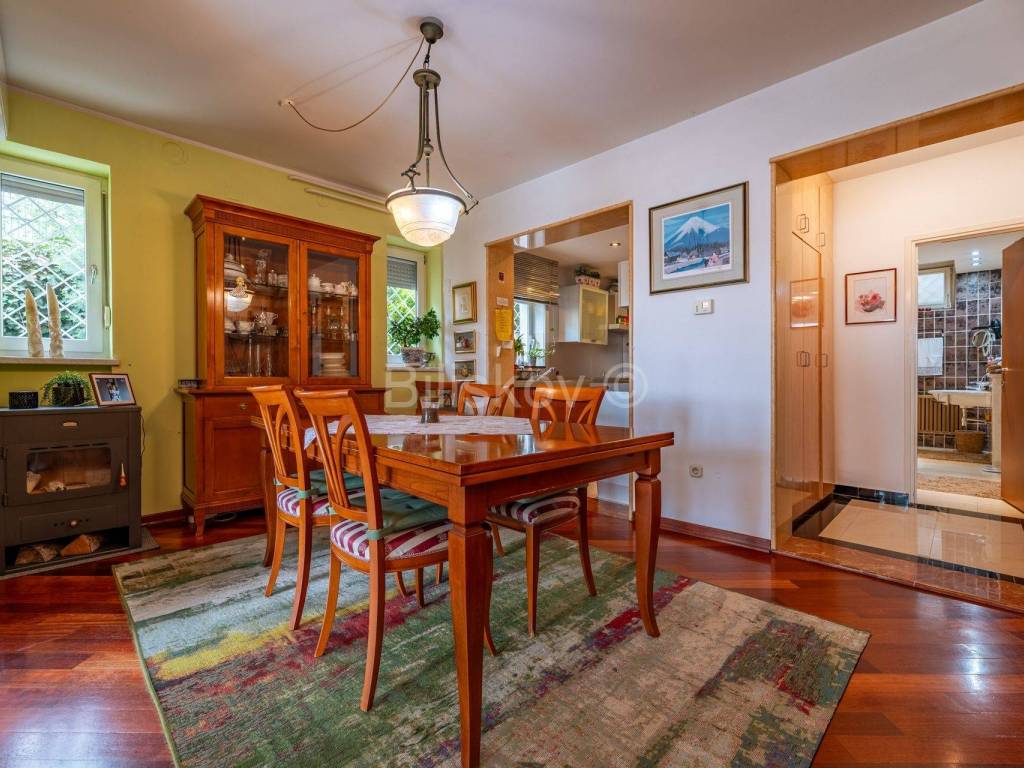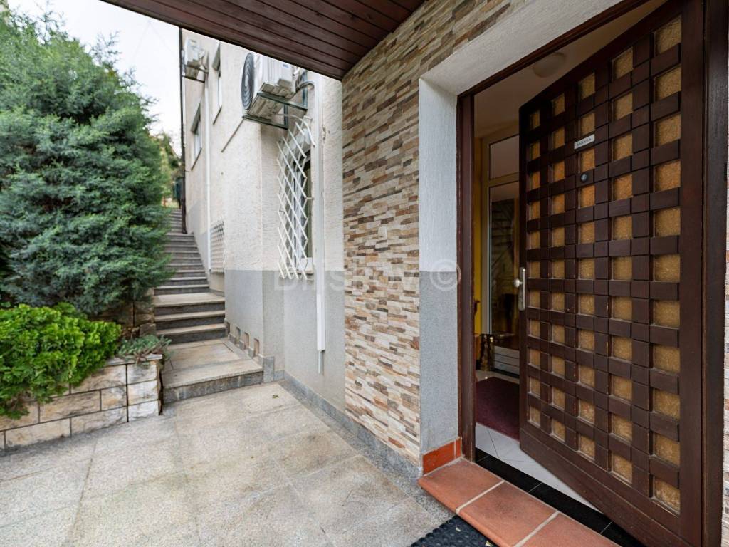 Kuća se nalazi u drugom redu od glavne ulice, pa je stoga stanu osiguran mir i tišina.