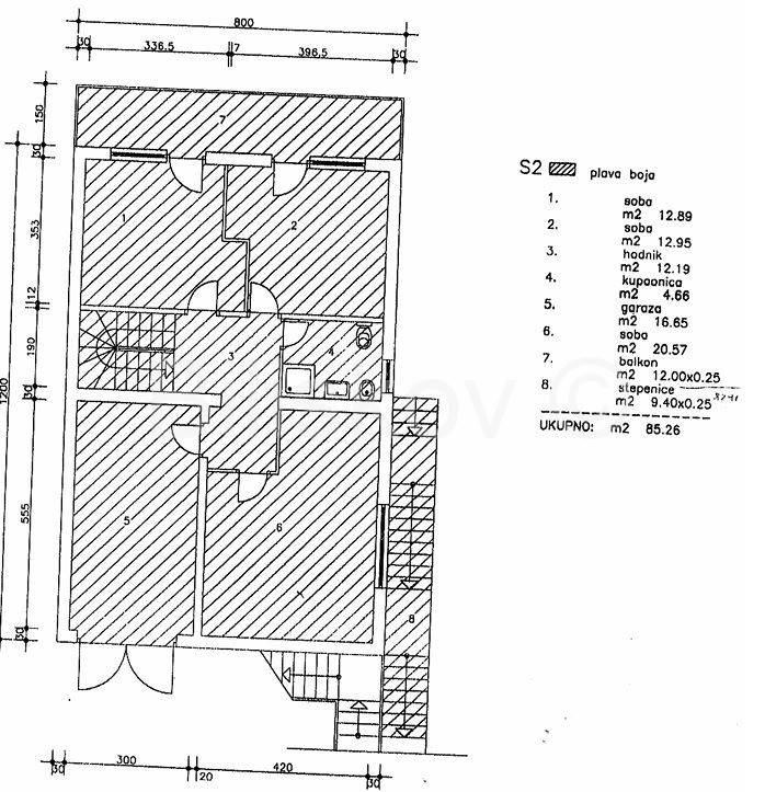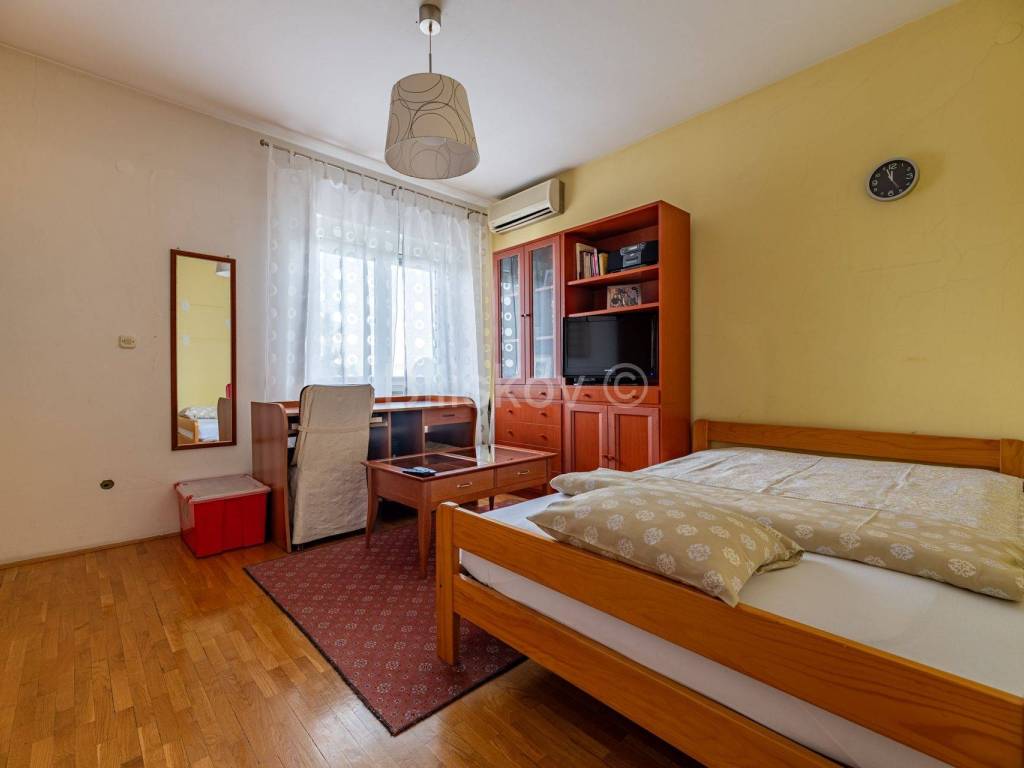 Lijep peterosoban stan sa garsonjerom, površine 207, 50 m2, u kući građenoj 1980 godine. Kuća nema dizalo.