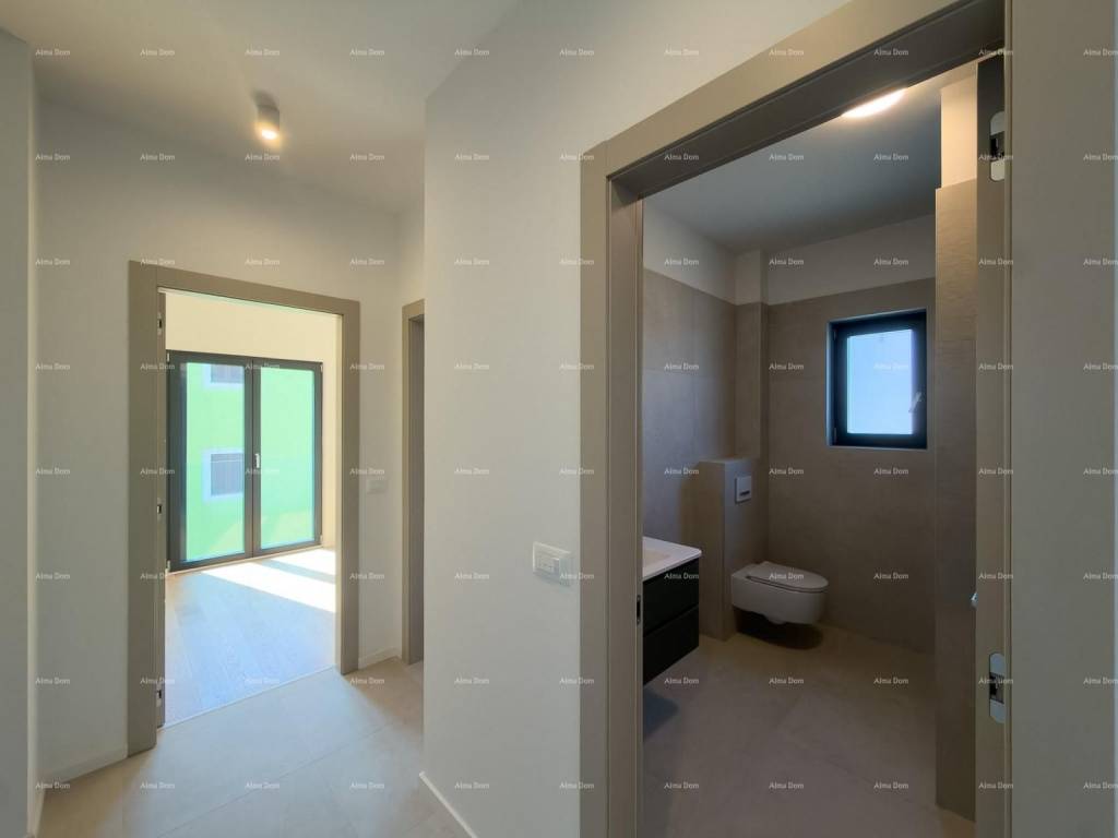 Na odličnoj lokaciji u Premanturi, svega 500 metara od parka prirode Kamenjak i kampa Stupice, prodaje se stan u prizemlju moderne novogradnje visoke kvalitete.