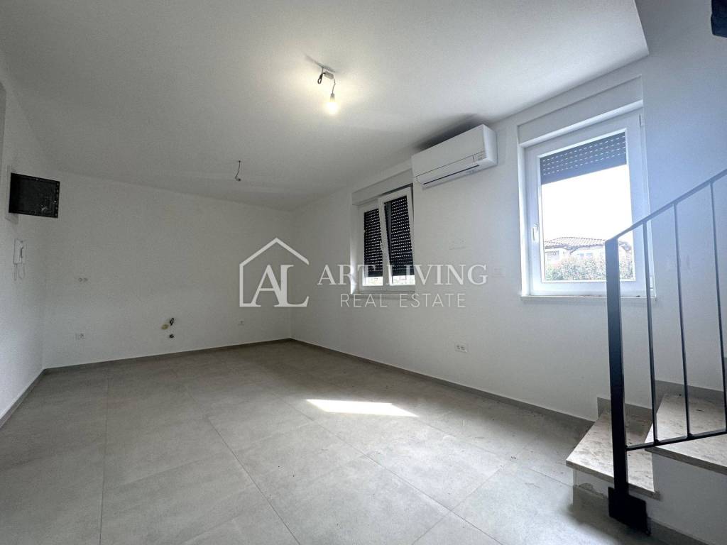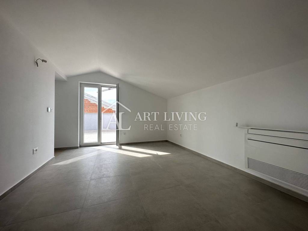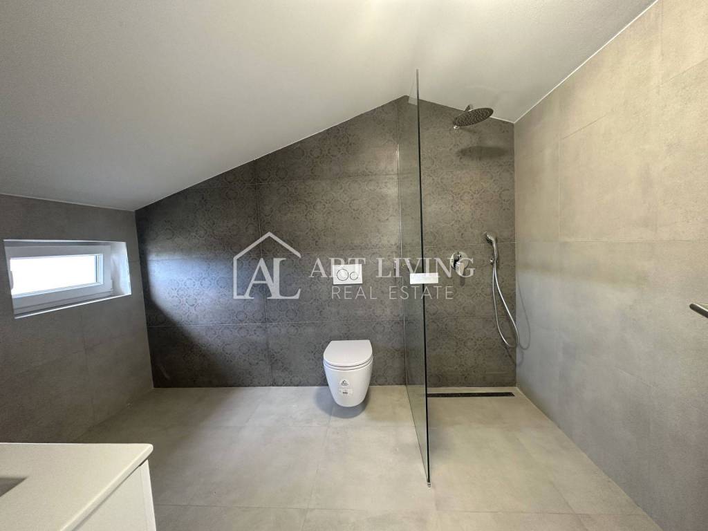 Stan karakterizira funkcionalan raspored prostorija i obilje prirodnog svjetla. Donju etažu stana čini prostrani dnevni boravak s kuhinjom i blagovaonicom, zatim spavaća soba i wc. Unutarnjim stubištem penjemo se na gornju etažu stana gdje se nalazi prostrani predprostor koji može biti uređen kao dodatni dnevni boravak ili radna soba, zatim su tu dvije udobne spavaće sobe te kupaonica. Sa gornje etaže pristupa se očaravajućoj krovnoj terasi površine 31 m2 sa koje se pruža jedinstven pogled na more i prelijep istarski krajolik.