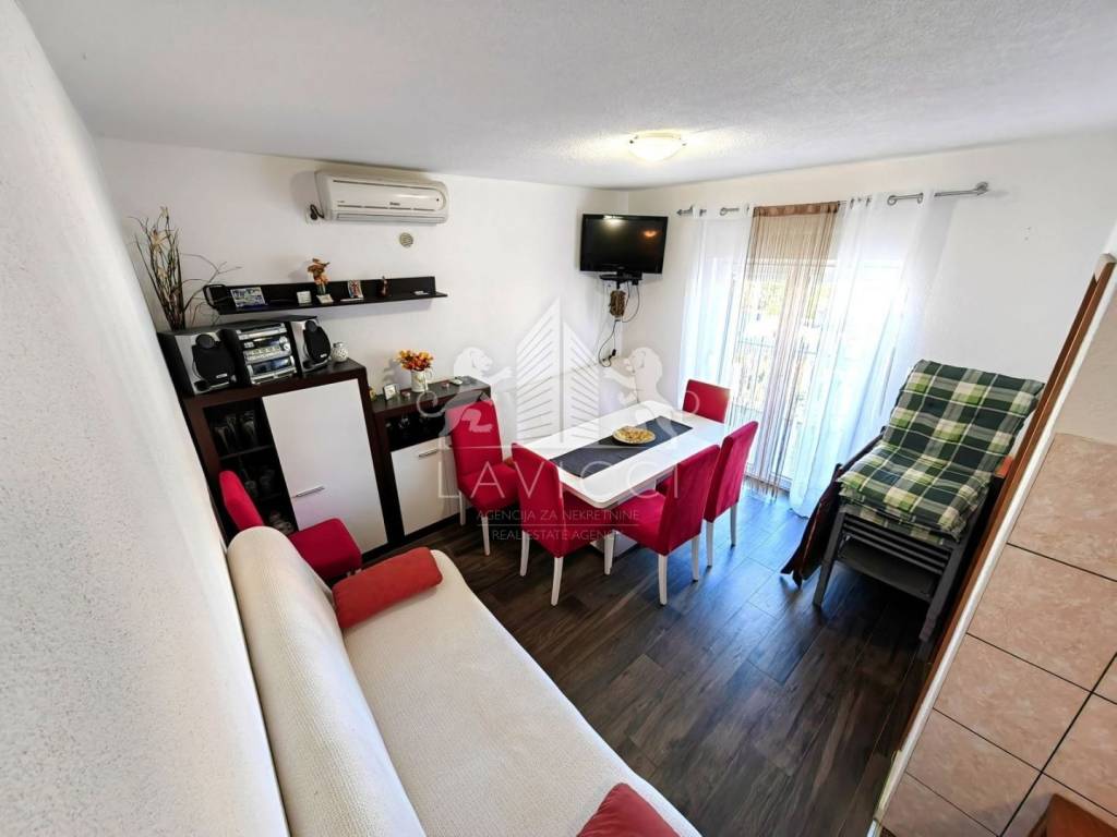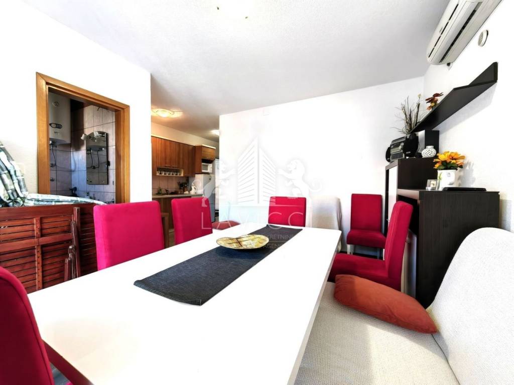 Nekretnina se prodaje kompletno namještena i opremljena te je useljiva odmah, bez dodatnih ulaganja. Grijanje i hlađenje osigurano je putem klima uređaja, a dodatnu kvalitetu pružaju PVC stolarija s alu roletama i komarnicima, keramika u dnevnom dijelu te laminat u spavaćim sobama.
