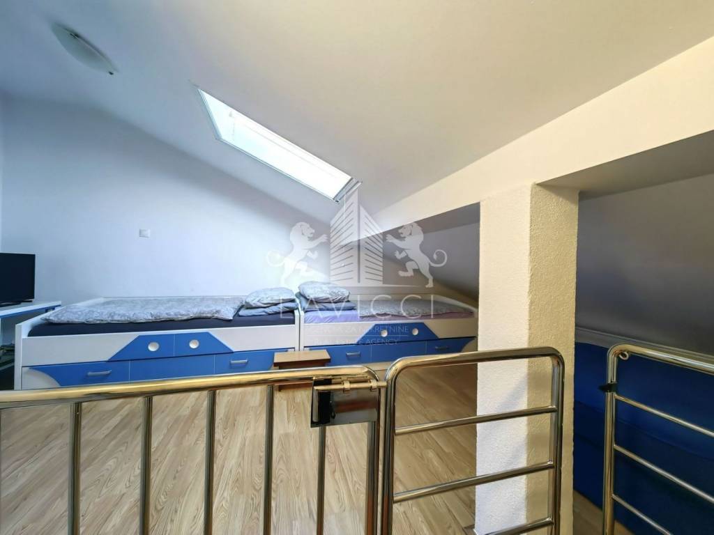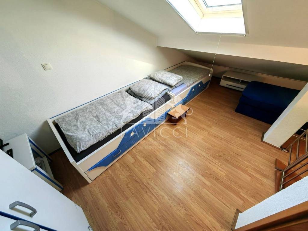 Prodaje se dvoetažni apartman u Bibinjama kod Zadra, smješten na 1. katu novije zgrade u mirnom okruženju obiteljskih kuća i borove šume, svega 500 metara od mora i uređene plaže.