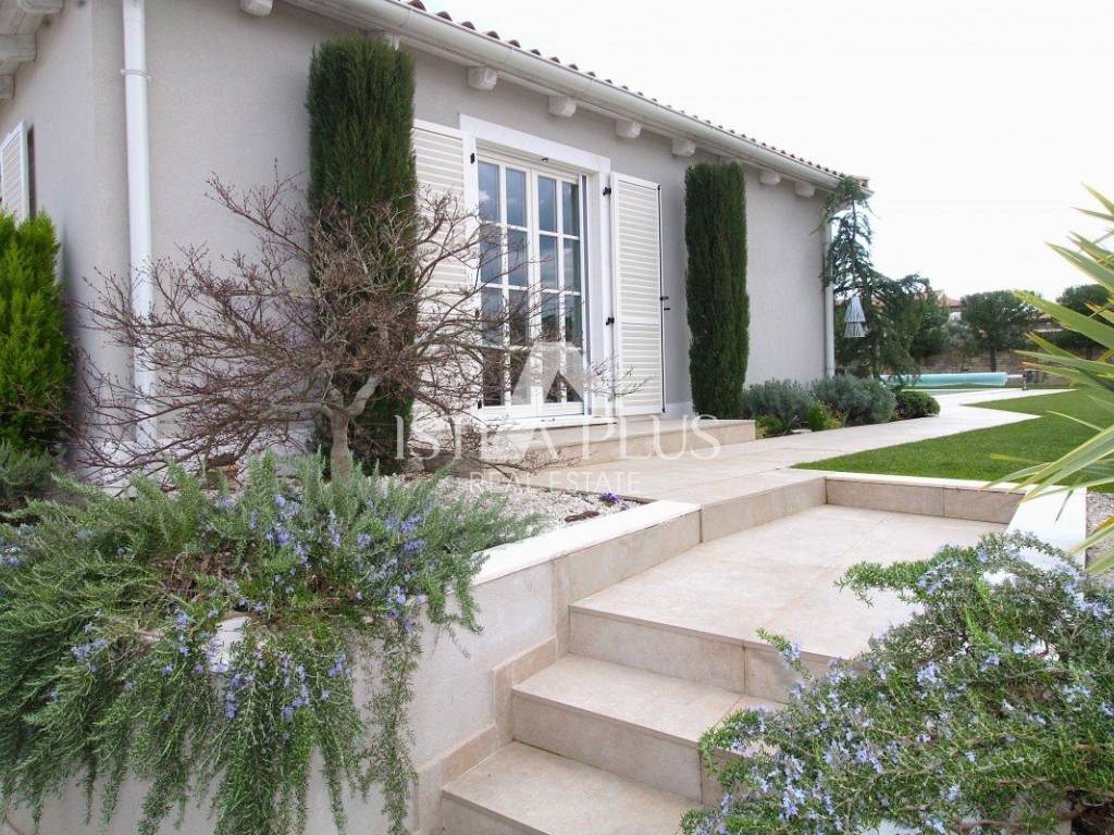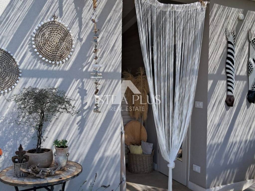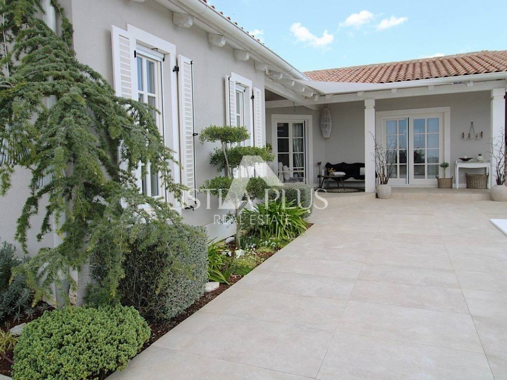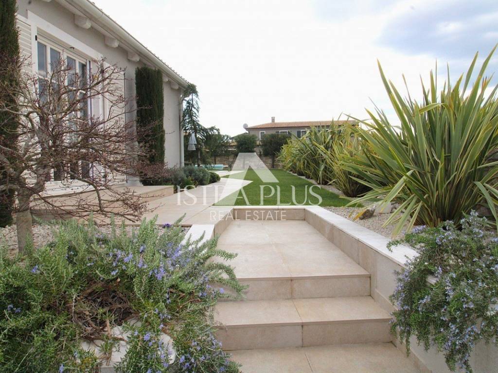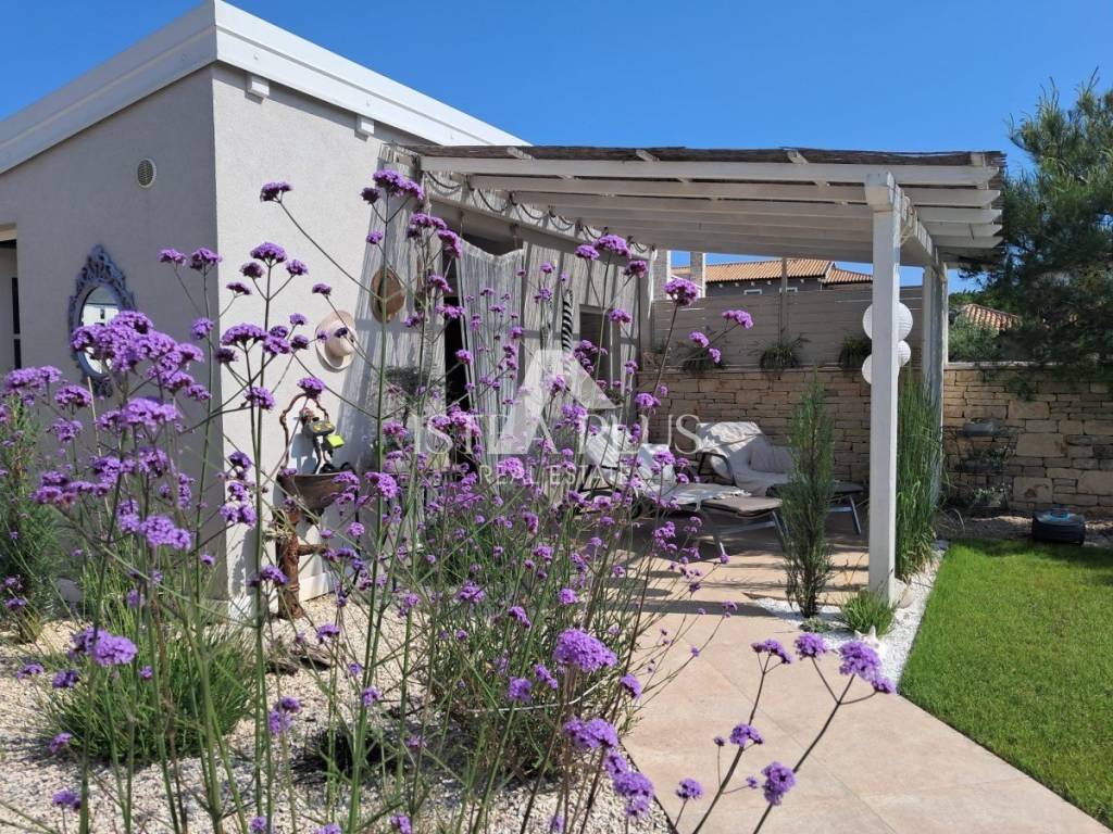 Predstavljamo vam samostojeću kuću koja kombinira kvalitetu, funkcionalnost i vrhunsku lokaciju s nesmetanim pogledom na more. Ova prekrasna, prizemna kuća u mediteranskom stilu smještena na parceli od 900 četvornih metara.