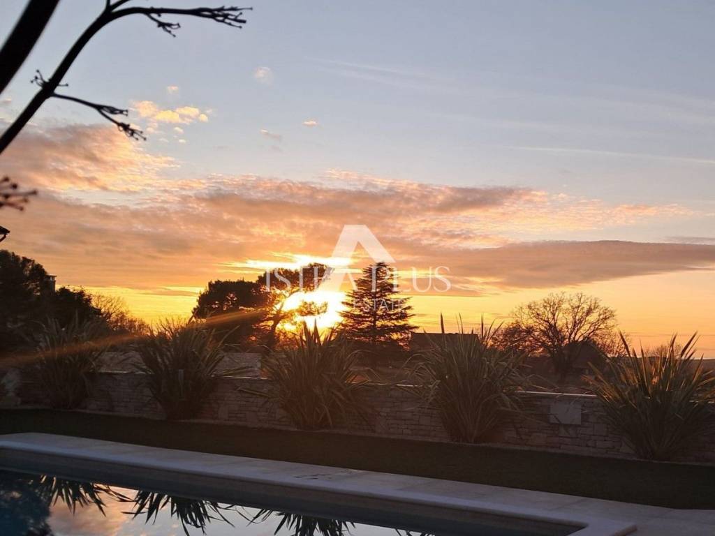 Ovaj dnevni boravak s kaminom odiše toplinom i elegancijom te nudi pristup terasi koja ga okružuje i grijanom bazenu sa slanom vodom od 40 četvornih metara.