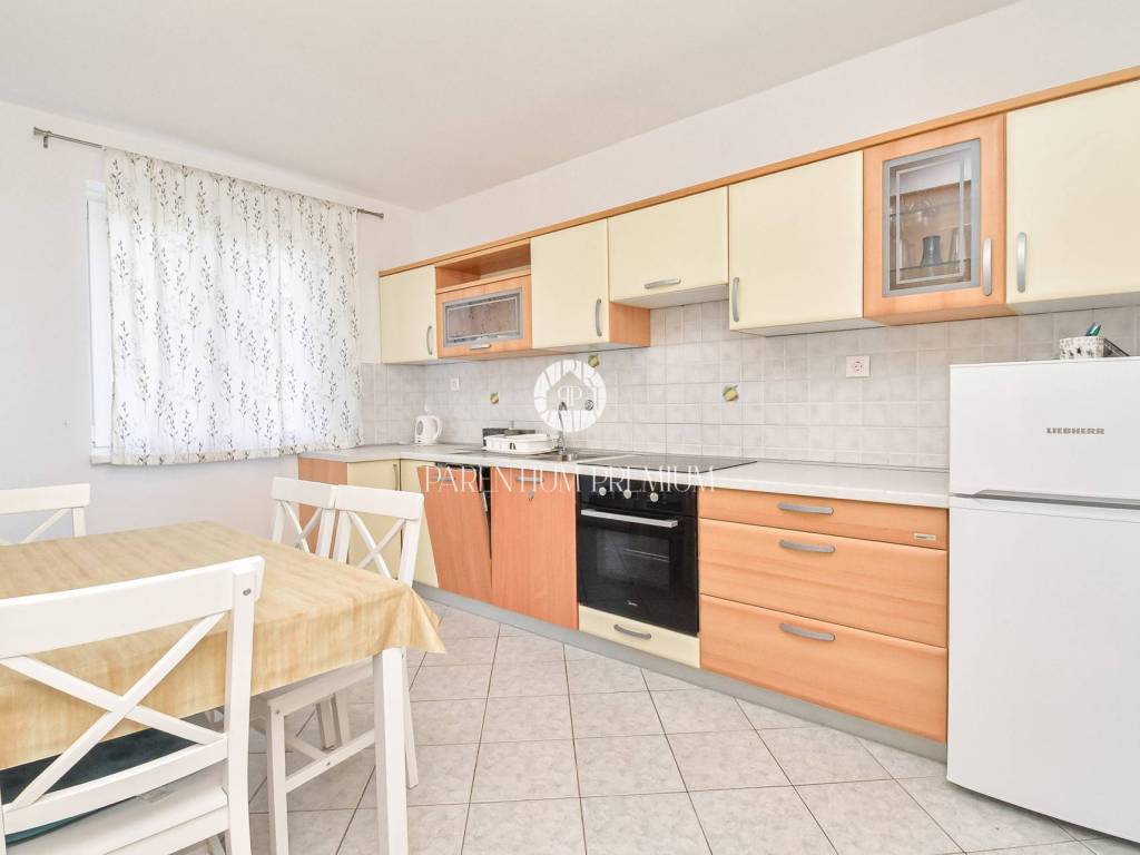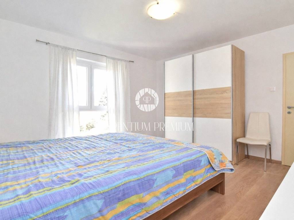 Stan se odlikuje odličnim rasporedom te se sastoji od ulaznog predprostora s garderobom, jedne kupaonice, dvije prostrane spavaće sobe, zasebnog dnevnog boravka s izlazom na natkrivenu terasu, te kuhinje s blagovaonicom koja također ima izlaz na natkrivenu terasu s koje se pruža lijep pogled na more.
