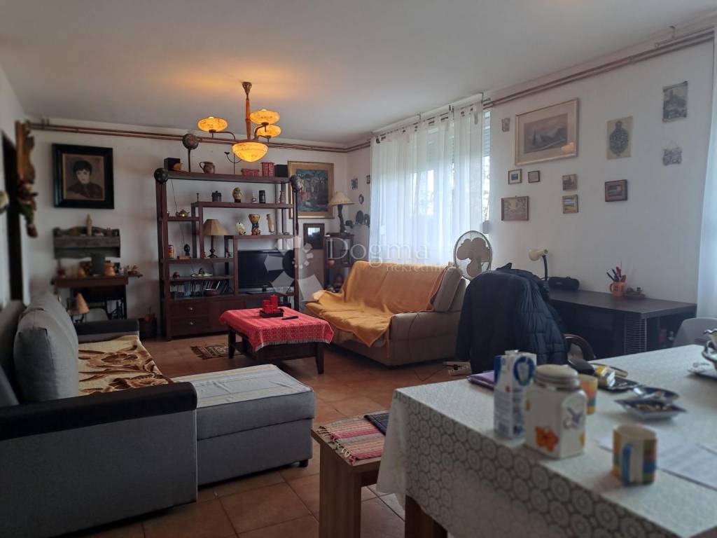 - stana u prizemlju s posebnim ulazom a koji ima hodnik, kupaonicu, kuhinju, 2 ostave, open space dnevni boravak s blagovaonicom te pristup garaži u koju stanu još 2 vozila. Grijanje je centralno na pelete, spojeno na 1.kat
