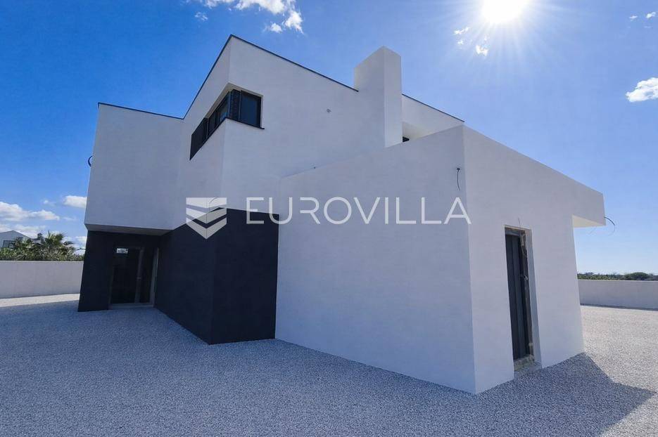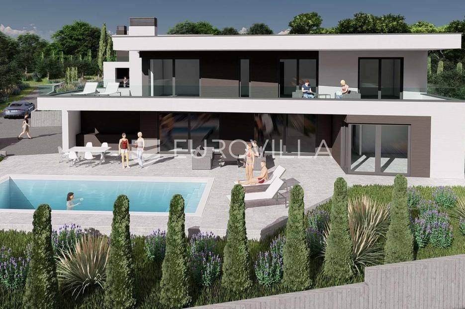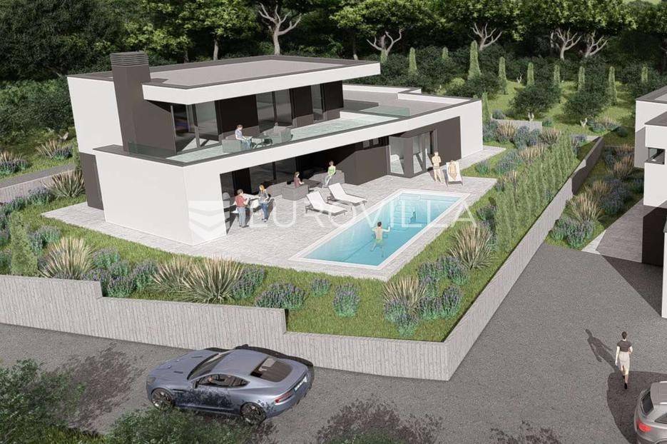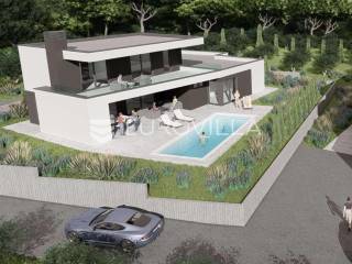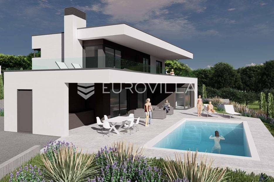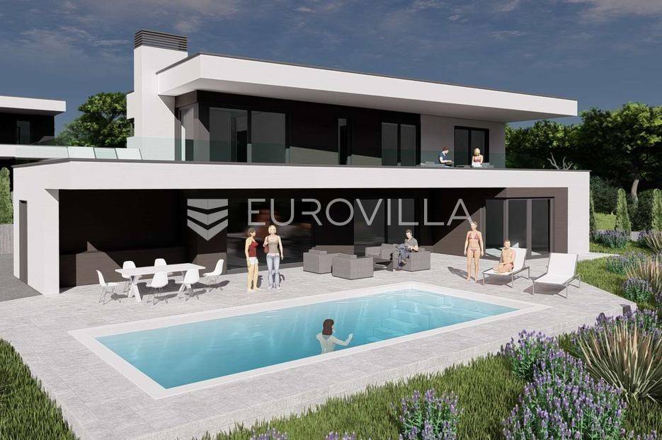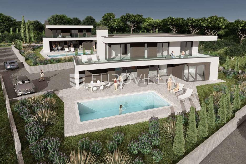 U iznimnoj okolici Umaga, na top poziciji koja garantira panoramski pogled na more koji se nikada neće zagraditi, nudimo ovu impozantnu modernu vilu površine 222,45 m², smještenu na prostranoj okućnici od 815 m². Ova rezidencija predstavlja savršen spoj luksuza, funkcionalnosti i netaknute ljepote istarskog krajolika, idealna za obiteljski život ili prestižni turistički najam.Vila je raspoređena na dvije elegantno osmišljene etaže.Prizemlje dominira prostranim open space konceptom koji objedinjuje modernu kuhinju, blagovaonicu i dnevni boravak, stvarajući svijetao i prozračan prostor za druženje. Tu se nalazi i jedna komforna spavaća soba te zasebni WC i kupaonica. Iz prizemlja se izlazi na veliku terasu, idealnu za opuštanje, koja se nastavlja na lijepo uređeni vrt s privatnim bazenom od 35 m², savršenim za uživanje u ljetnim danima.Prvi kat namijenjen je odmoru i privatnosti, te obuhvaća tri prostrane spavaće sobe. Sve spavaće sobe na prvom katu nude predivan pogled na more i imaju direktan izlaz na terasu, te svaka spavaća soba ima vlastito, elegantno uređeno kupatilo.Kvaliteta gradnje ove vile je iznimno visoka, s pažljivo odabranim materijalima i primjenom najmodernije tehnologije, osiguravajući dugotrajnost, energetsku učinkovitost i vrhunsku udobnost.Lokacija vile je izvanredna – smještena je na top, mirnoj poziciji, svega 5 km od mora i centra Umaga. Ovo područje nudi savršen balans između mira i privatnosti prirode, te brze dostupnosti svih urbanih sadržaja, plaža i turističkih atrakcija Umaga.Ova moderna vila idealna je za one koji traže savršenu obiteljsku kuću ili iznimno luksuznu nekretninu za turistički najam, obećavajući nezaboravno iskustvo življenja u Istri.Nekretnina je u sustavu PDV-a, te oglašena cijena uključuje PDV.Za sve dodatne informacije stojimo Vam na raspolaganju.... Više na eurovilla.hr, ID: 616077