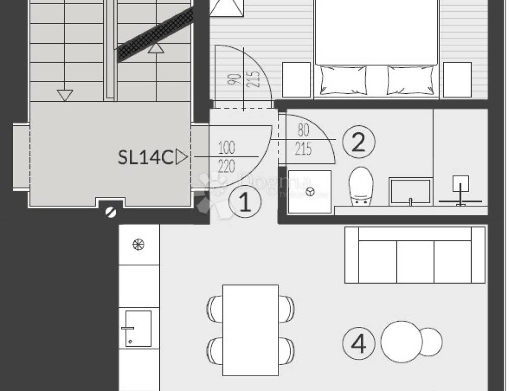 Opcija 4 - Grey - Podovi dnevnog boravka i soba izvedeni svijetlo sivim keramičkim