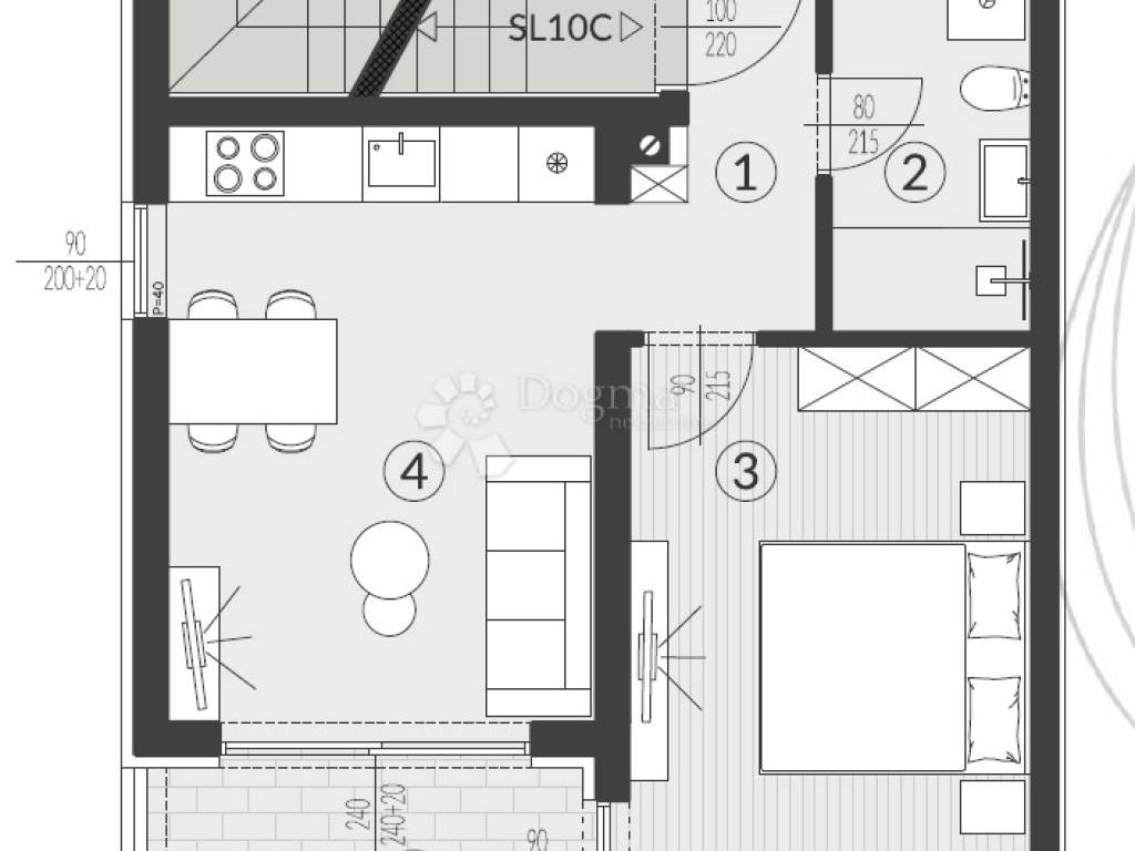 Opcija 4 - Grey - Podovi dnevnog boravka i soba izvedeni svijetlo sivim keramičkim