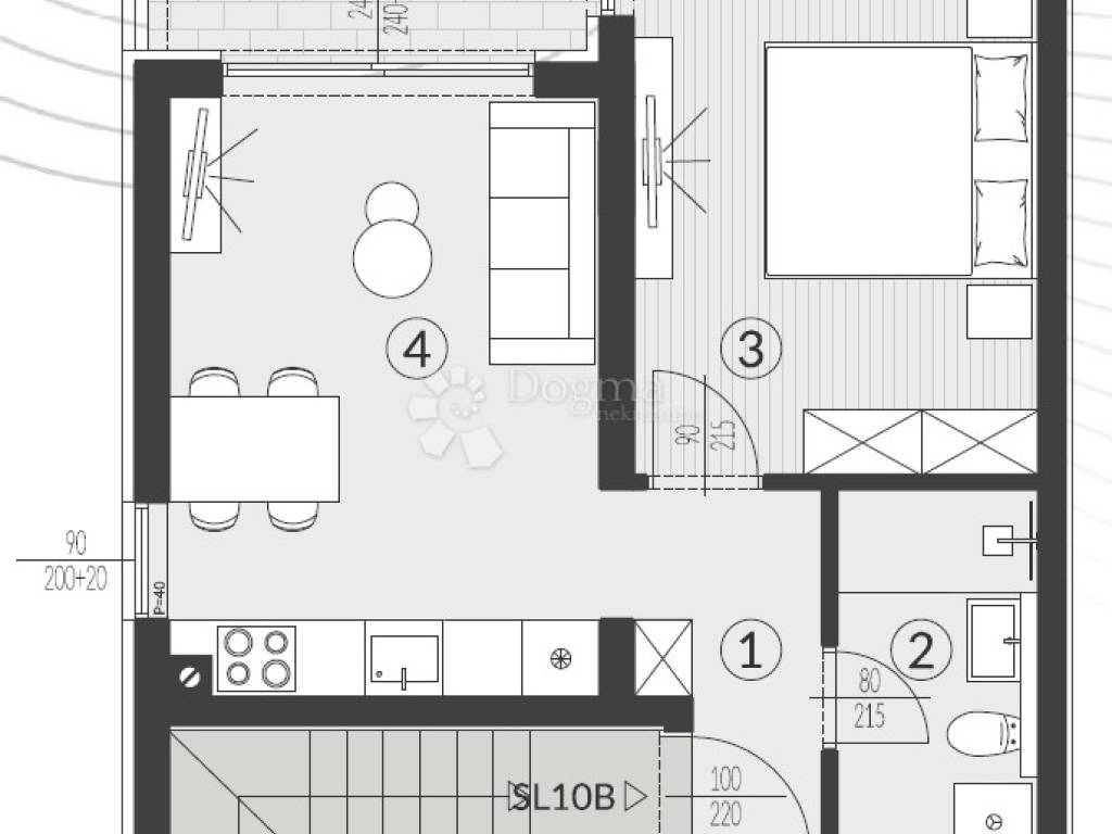 Opcija 3 - Dark - Podovi dnevnog boravka i soba izvedeni antracit keramičkim