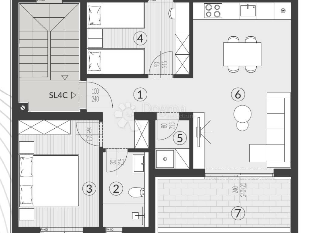 Opcija 3 - Dark - Podovi dnevnog boravka i soba izvedeni antracit keramičkim
