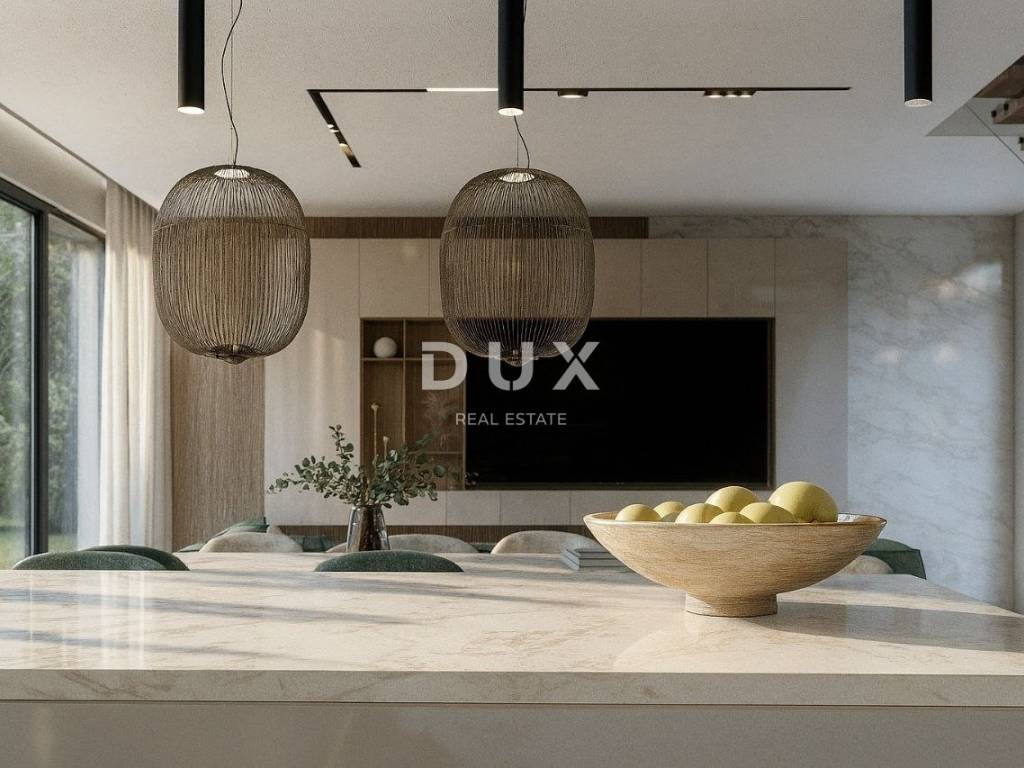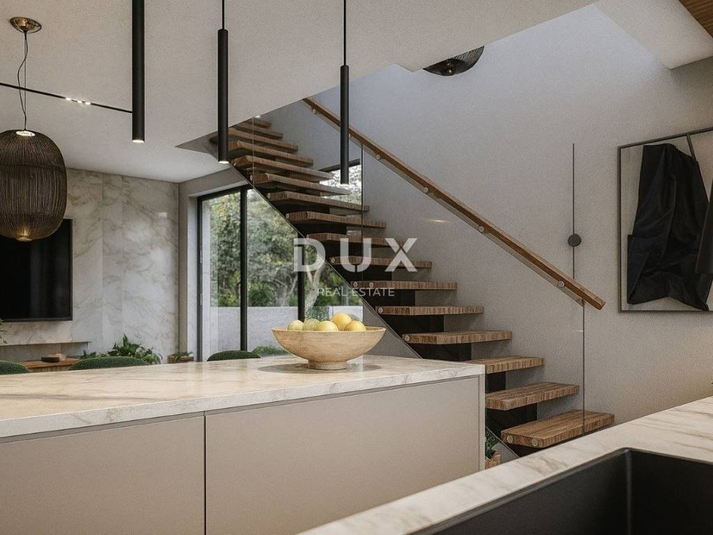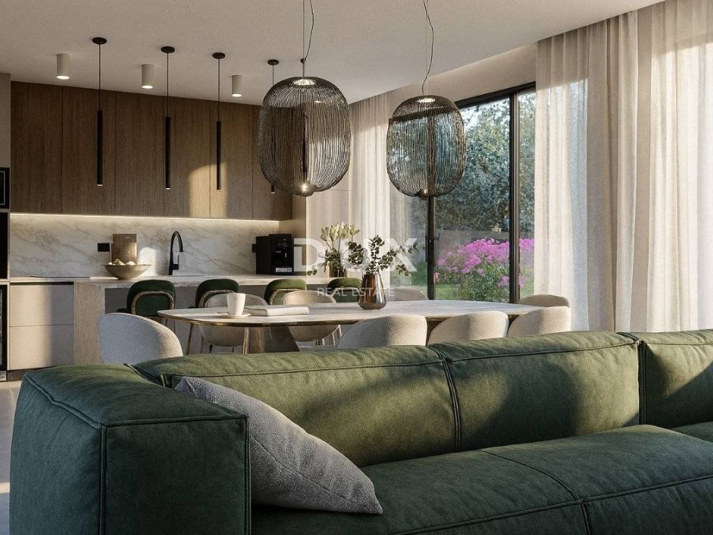 Luksuzna kuća ukupne je neto povšine 150 m2 (30 m2 vanjska terasa). Prizemlje obuhvaća prostranu kuhinju, blagovaonicu i dnevni boravak, sve zajedno smješteno u 42 m2 open space prostora. Uz kuhinju se nalazi i ostava za hranu, a u nastavku tehnička prostorija te wc.