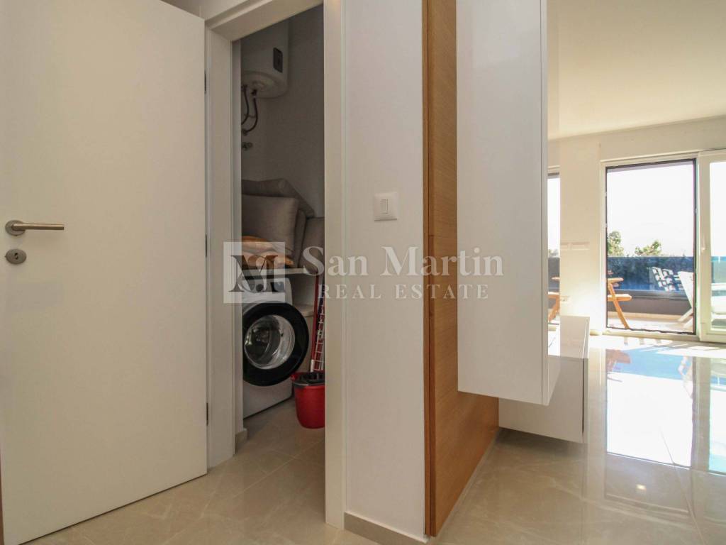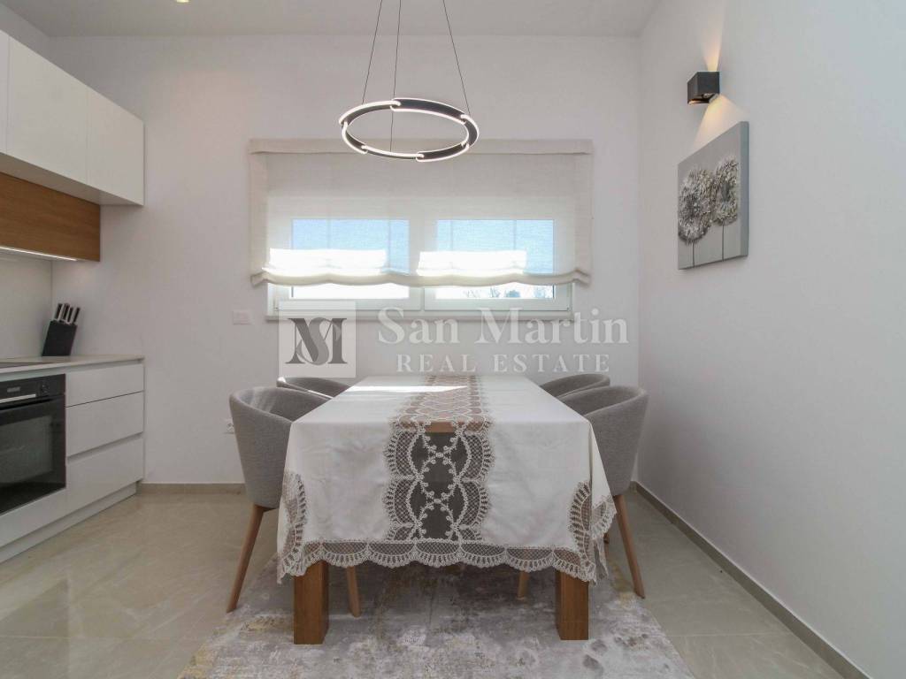 Nekretnina je potpuno opremljena i moderno namještena te se prodaje u takvom stanju spremna za useljenje bez dodatnih ulaganja. Opremljena je klima uređajima u svim prostorijama, električnim podnim grijanjem te električnim roletama, što osigurava maksimalnu udobnost tijekom cijele godine.