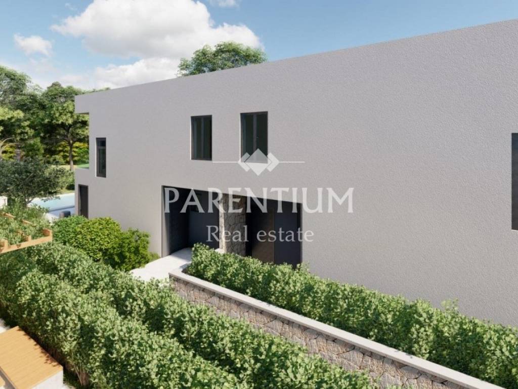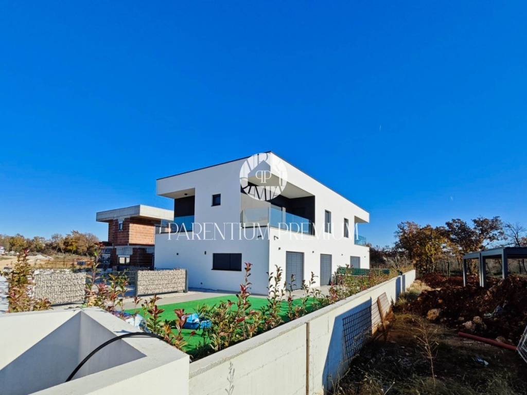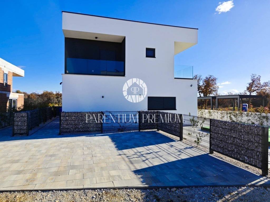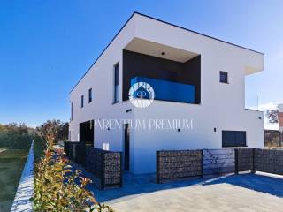 Poreč, dvojna kuća na prodaju, 129 m i cca 410 m okućnice. Ova lijepa i prostrana dvojna obiteljska kuća smještena je na mirnoj lokaciji na samo 2 kilometara od starogradske jezgre Poreča. Kuća se sastoji od ulaznog hodnika, kupaonice, utility sobe, prostranog dnevnog boravka s blagovaonicom i kuhinjom s izlazom na terasu i vrt. Prizemno je smještena i ostava s zasebnim vanjskim ulazom. Na 1. katu su tri spavaće sobe, dvije sa vlastitom kupaonicom i dvije natkrivene terase. Ova kvalitetno građena novogradnja je u prvoj fazi gradnje i predviđen rok dovršenja je krajem 2022 godine. Grijanje je predviđeno putem centralnog podnog grijanja putem dizalice topline, predviđena je i prva faza solarnog sistema, a za rashlađivanje predviđeni su klima uređaji u svakoj sobi i dnevnom boravku. U dvorištu kuće nalazi se bazen dimenzije 8x4 m, a u sklopu terase postavljena je i natkrivena ljetna kuhinja. Kuća se prodaje kompletno dovršena.