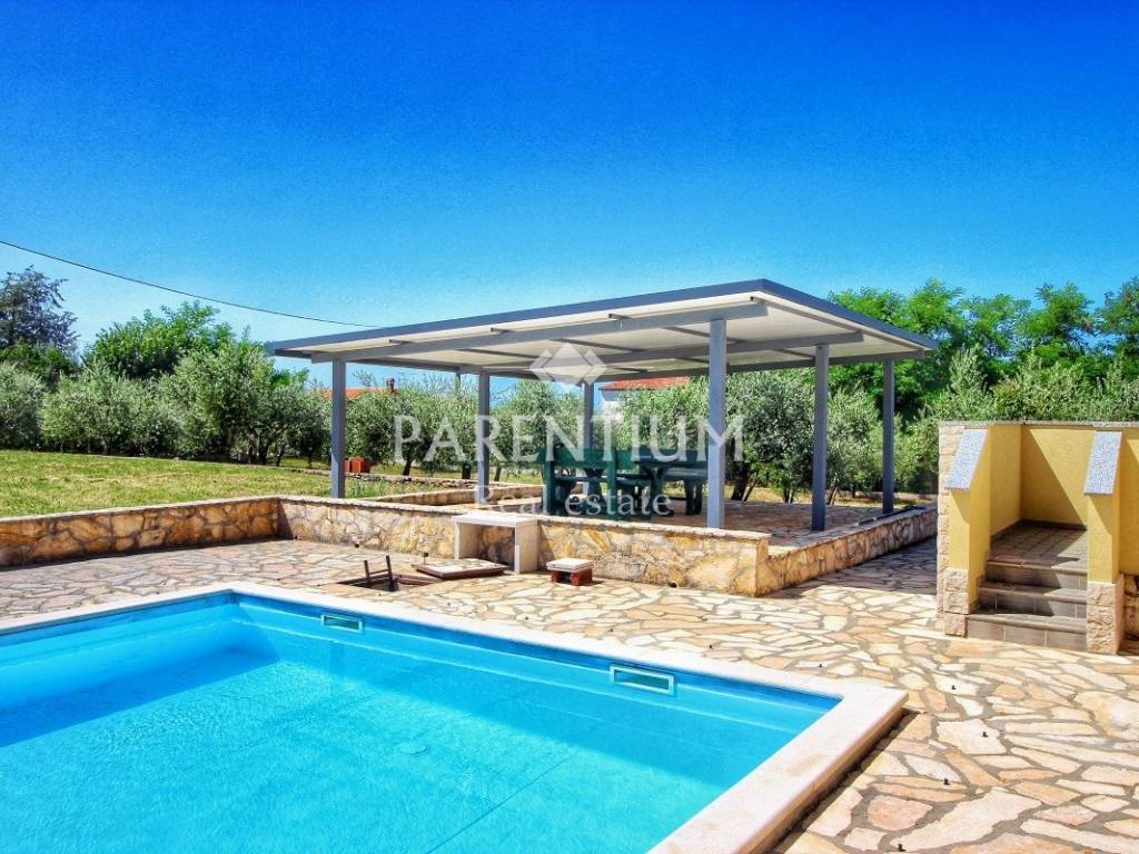 Kuća ima prostranu okućnicu na kojoj je smješten bazen i natkrivena terasa. U sklopu okućnice nalaze se 30 stabala maslina koje pružaju odličnu privatnost.