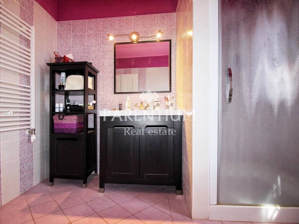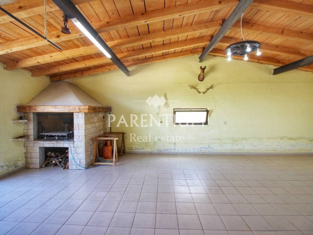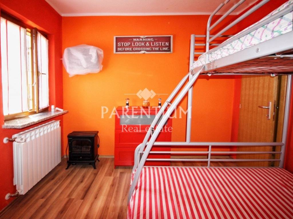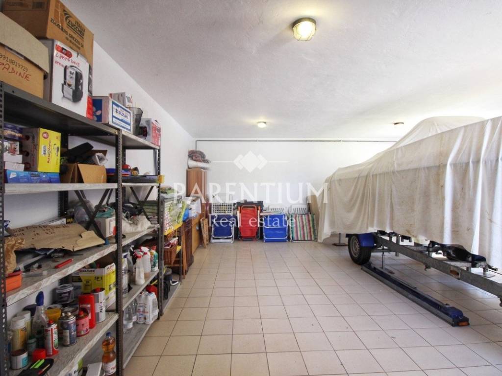 U prizemlju kuće smješten je stan s jednom spavaćom sobom od 32 m2, prostrana garaža, te konoba s kuhinjom i kaminom.