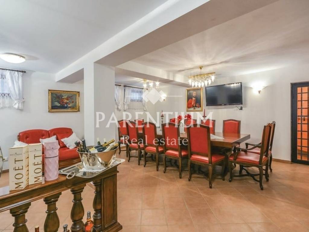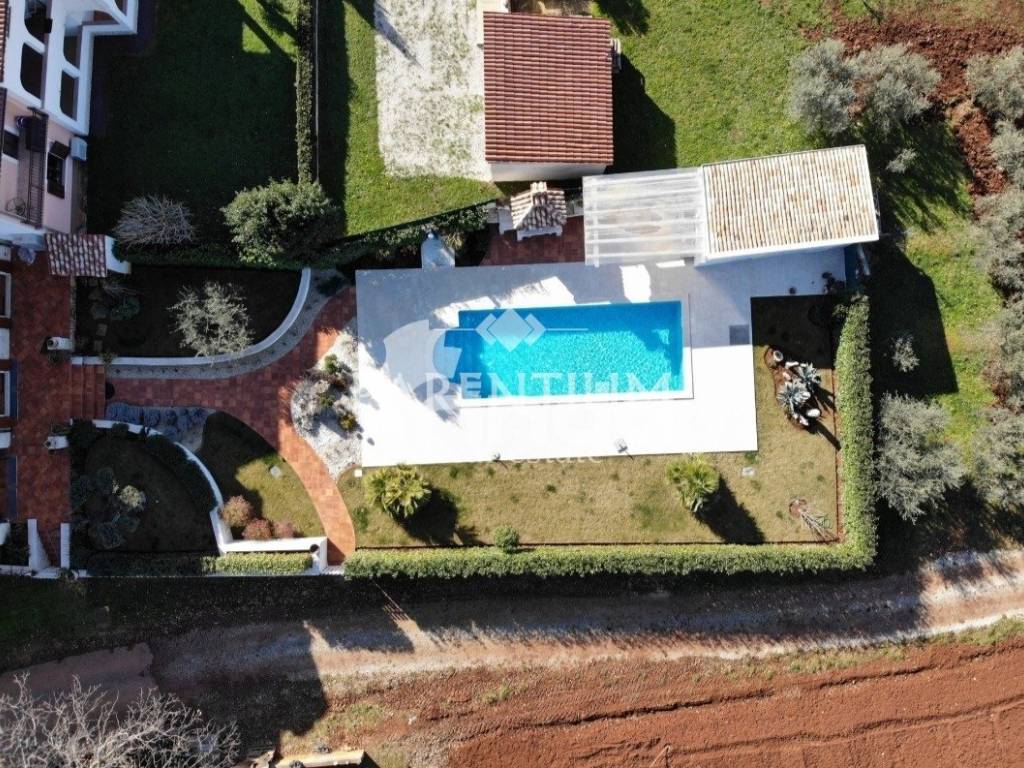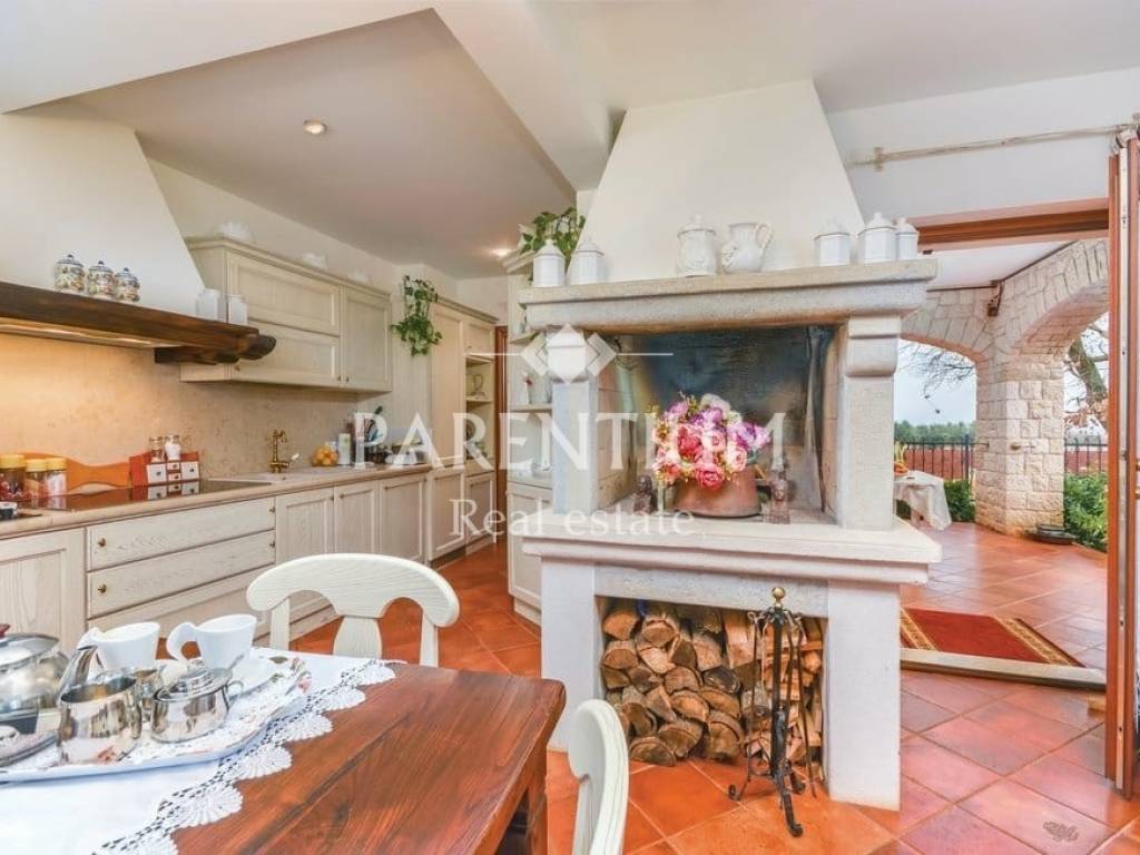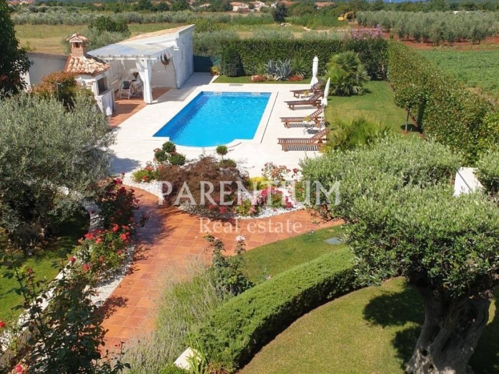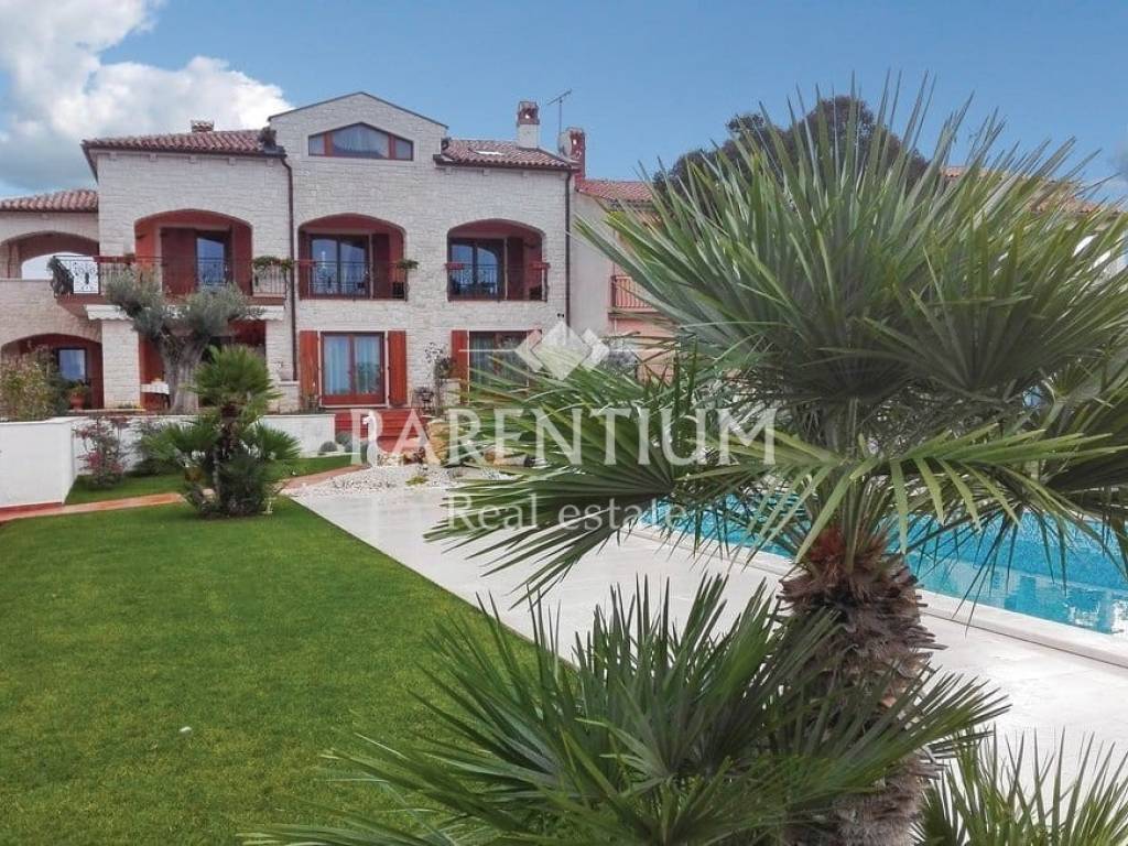 Poreč, nedaleko od centra grada i mora prodaje se ekskluzivna vila sa bazenom. Nalazi se na 5km udaljenosti, te odmah od prvog pogleda primijećuje se trud i posebnost u uređenju. U suterenu kuće nalazi se konoba sa velikim drvenim stolom, vinotekom, ostavom i jednim wcom. U prizemlju kuće nalazi se prostran dnevni prostor sa kaminom, blagovaona, kuhinja polukružnog oblika rađena po mjeri. Kroz cijelu kuću dominira mnoštvo detalja, od Murano stakla, Swarovski kristala. pozicija led svjetla, te stilskog talijanskog namještaja od kojeg je većina rađena po mjeri. Na prvom katu nalaze se tri spavaće sobe, dva kupatila i garderoba. U potkrovlju kuće nalazi se radna soba i sauna. Okućnicu, koja je površine 885m2, uređena je i održavana sa puno mediteranskog bilja, cvijeća i stoljetnih maslina, ima i fontanu.Uz bazen nalazi se ljetna kuhinja, barbeque, solarni tuš te još jedna kučica sa kupatilom.