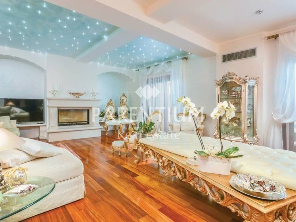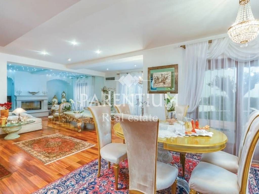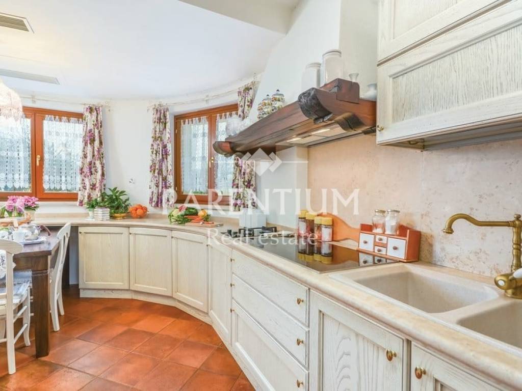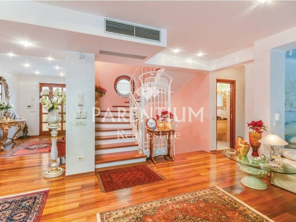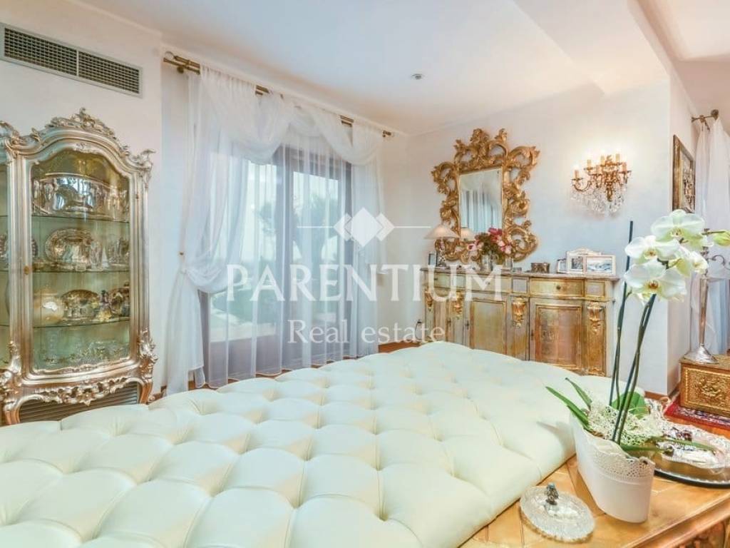 Poreč, nedaleko od centra grada i mora prodaje se ekskluzivna vila sa bazenom. Nalazi se na 5km udaljenosti, te odmah od prvog pogleda primijećuje se trud i posebnost u uređenju. U suterenu kuće nalazi se konoba sa velikim drvenim stolom, vinotekom, ostavom i jednim wcom. U prizemlju kuće nalazi se prostran dnevni prostor sa kaminom, blagovaona, kuhinja polukružnog oblika rađena po mjeri. Kroz cijelu kuću dominira mnoštvo detalja, od Murano stakla, Swarovski kristala. pozicija led svjetla, te stilskog talijanskog namještaja od kojeg je većina rađena po mjeri. Na prvom katu nalaze se tri spavaće sobe, dva kupatila i garderoba. U potkrovlju kuće nalazi se radna soba i sauna. Okućnicu, koja je površine 885m2, uređena je i održavana sa puno mediteranskog bilja, cvijeća i stoljetnih maslina, ima i fontanu.Uz bazen nalazi se ljetna kuhinja, barbeque, solarni tuš te još jedna kučica sa kupatilom.