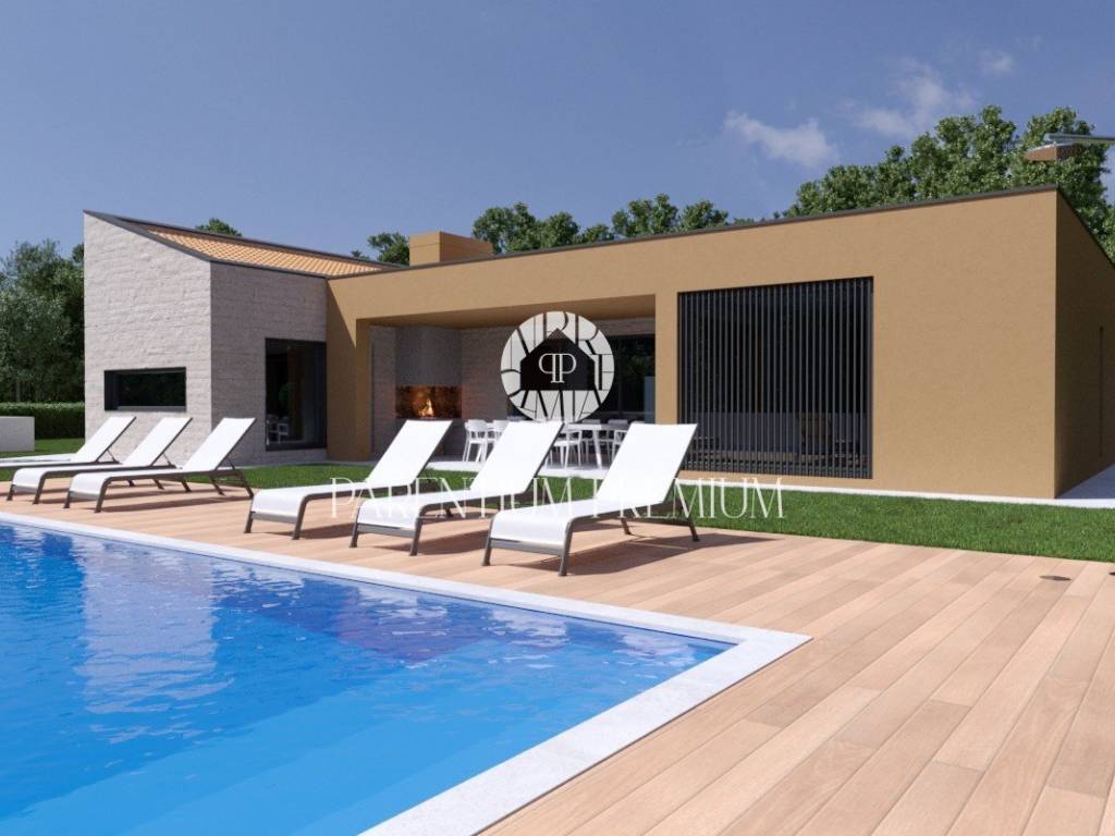 Kuća se sastoji od sveukupno 216m2 s terasama te ima neto površinu od 190m2 te grijani bazen od 50m2, a sve leži na parceli od 1000 kvadrata.