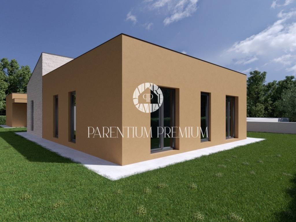 U okolici Poreča, u mirnom naselju svega par minuta od svih bitnih sadržaja kao što su trgovine, pošte, banke, vrtić, škola i slično, biti će smještena ova prizemnica modernog dizajna.