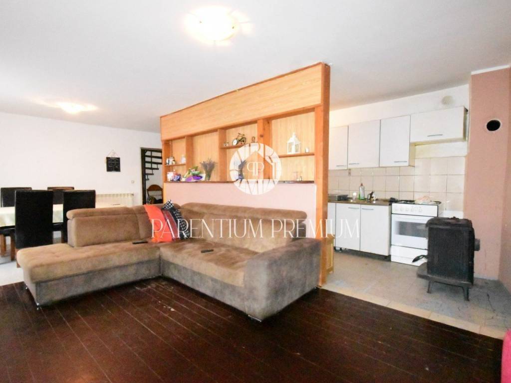 Kuća se proteže na 3 etaže gdje je u podrumu veliki neiskorišteni prostor koji može biti adaptiran za wellness, konobu i slično.