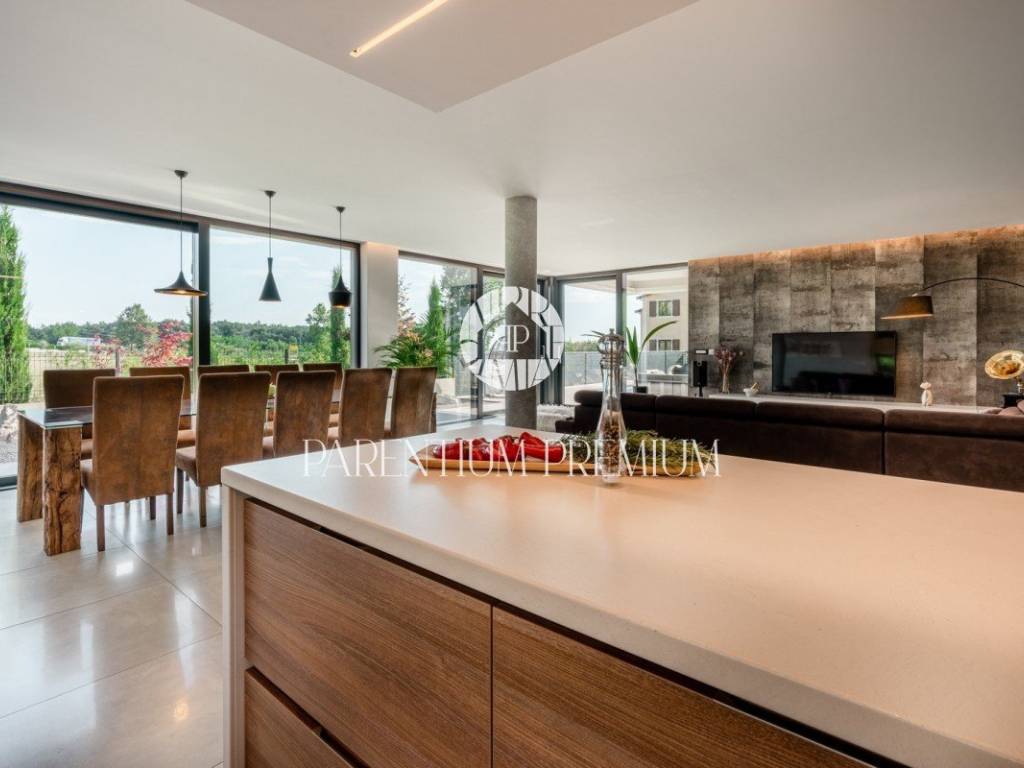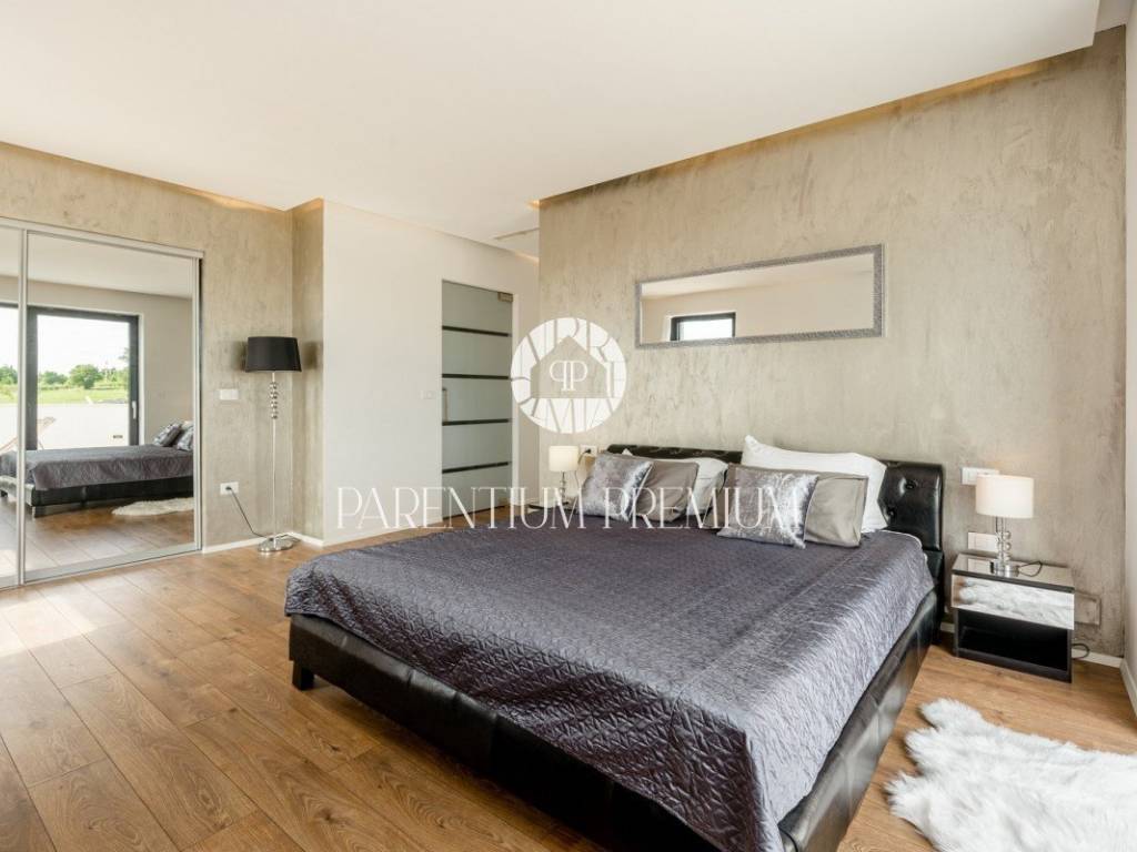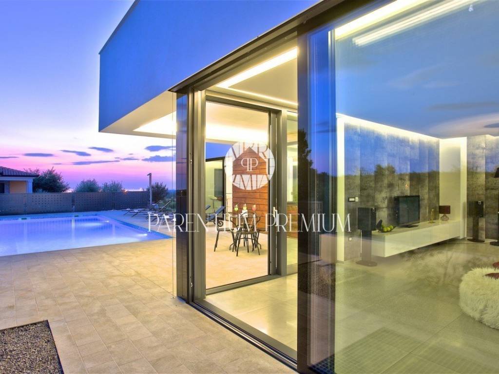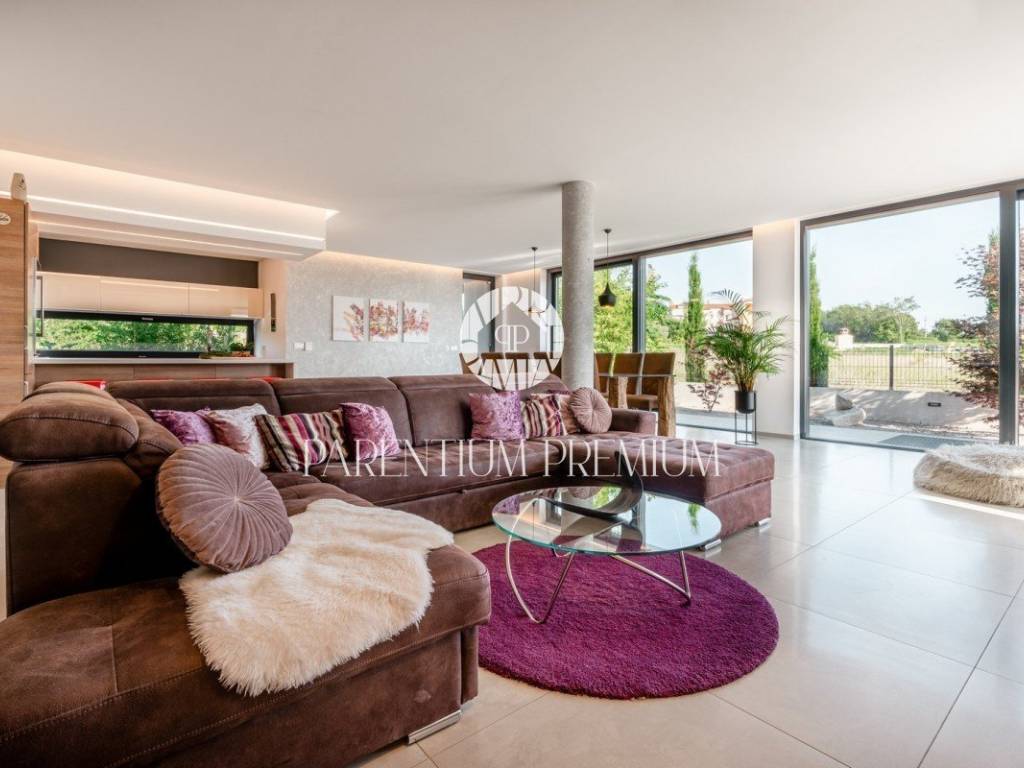 U okolici grada Poreča, u mjestu sa svim sadržajima kao što su trgovine, pošta, banka, škola, vrtić itd.., smjestila se ova luksuzna vila modernog dizajna stambene površine od 217m2 i zemljišta veličine 410m2.